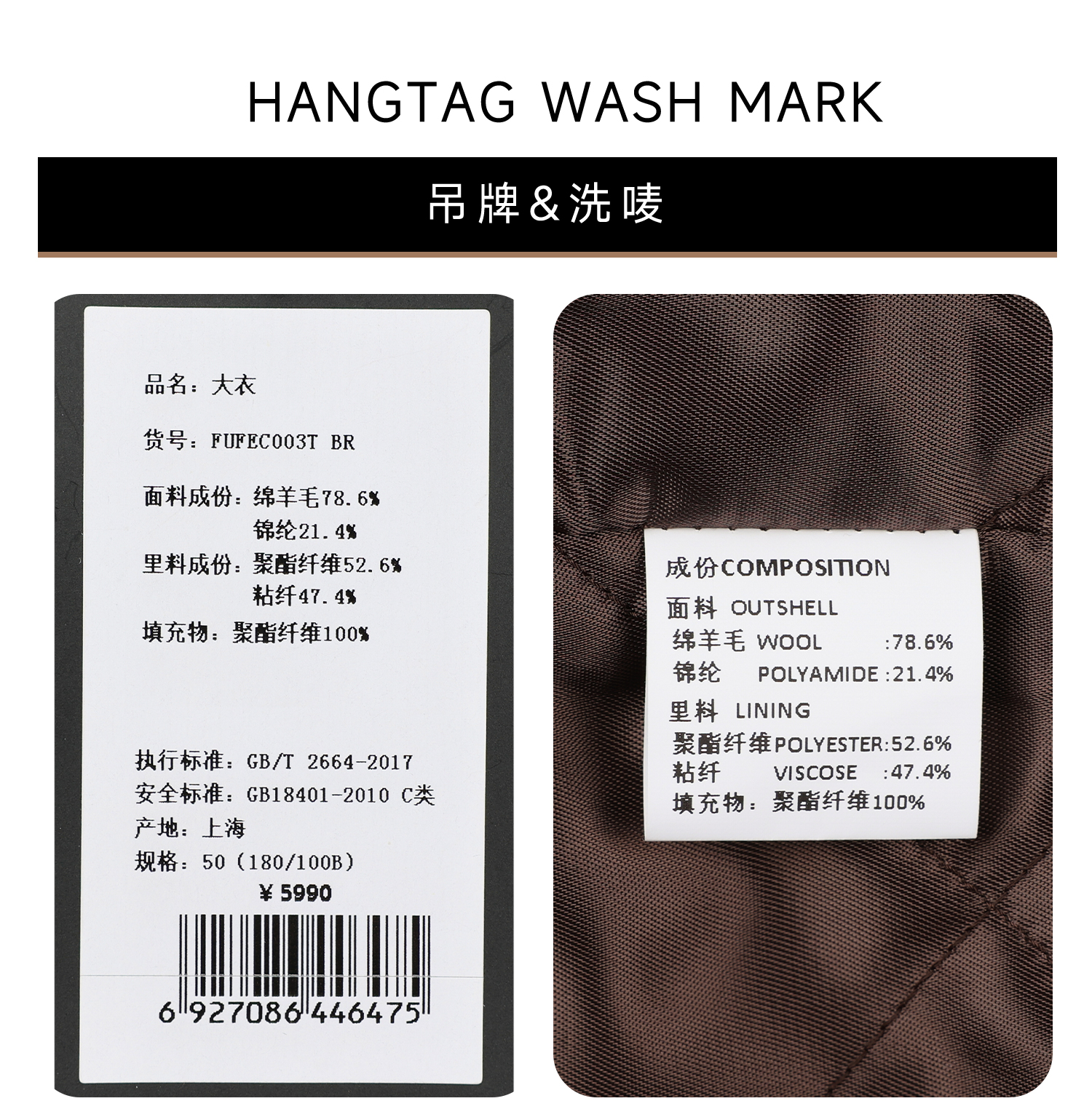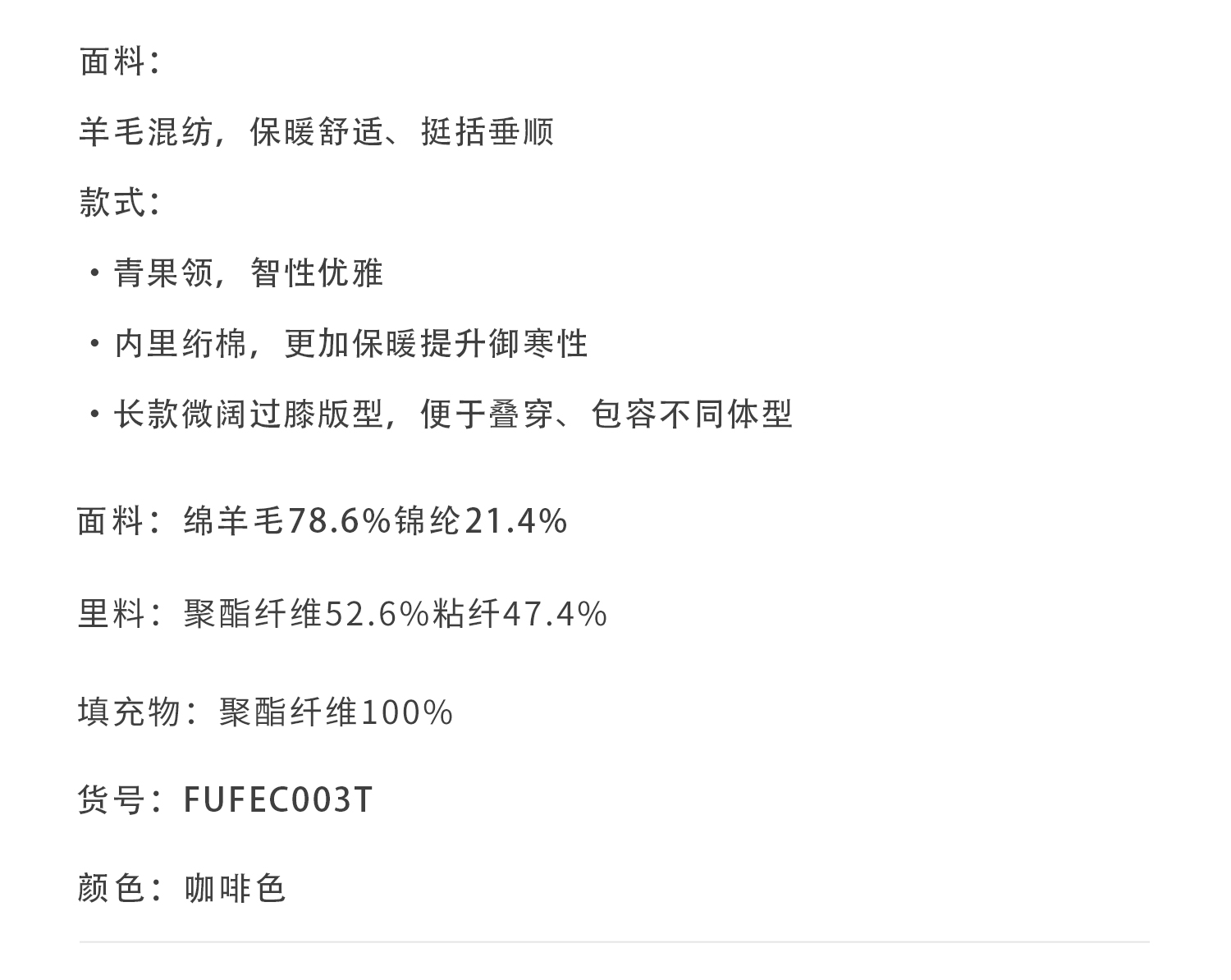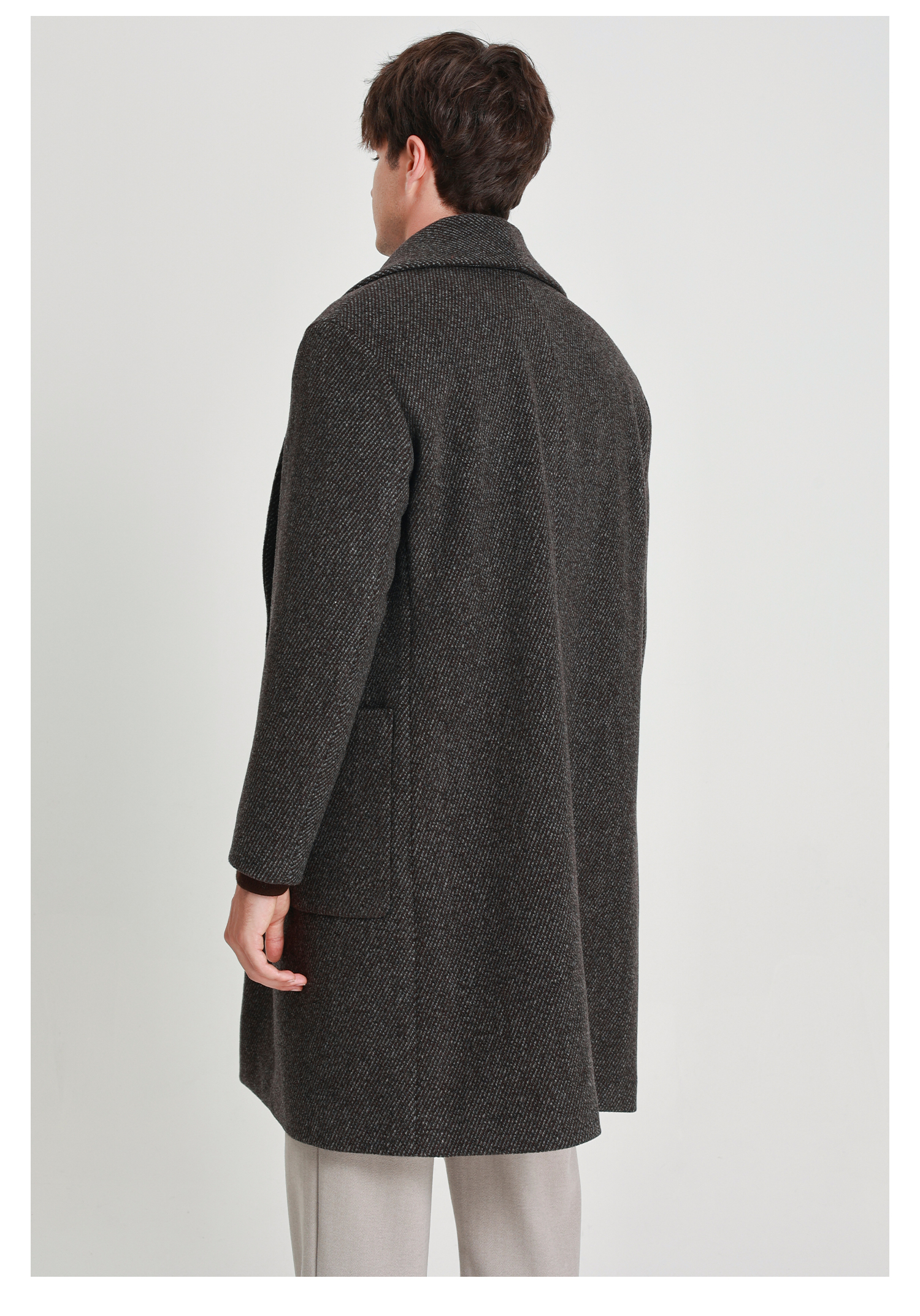 callisto咖色青果领微阔羊毛混纺大衣