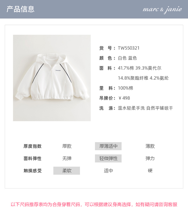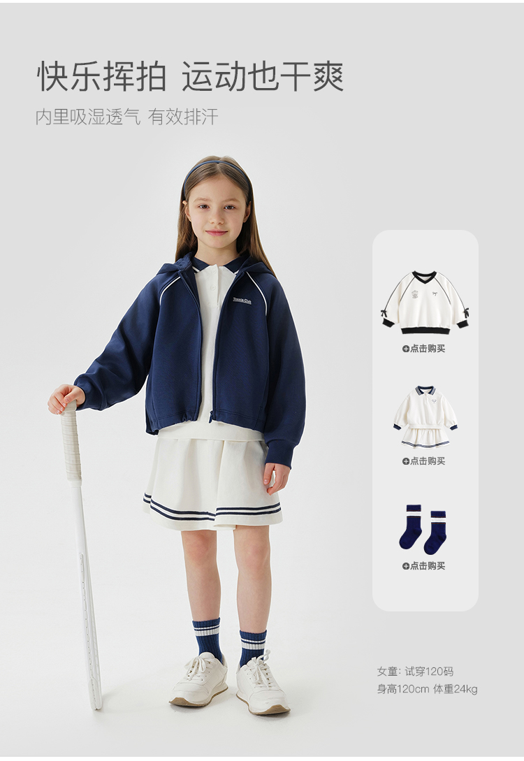马克珍妮男女童透气空气棉运动外套儿童卫衣2025年春装新款550321