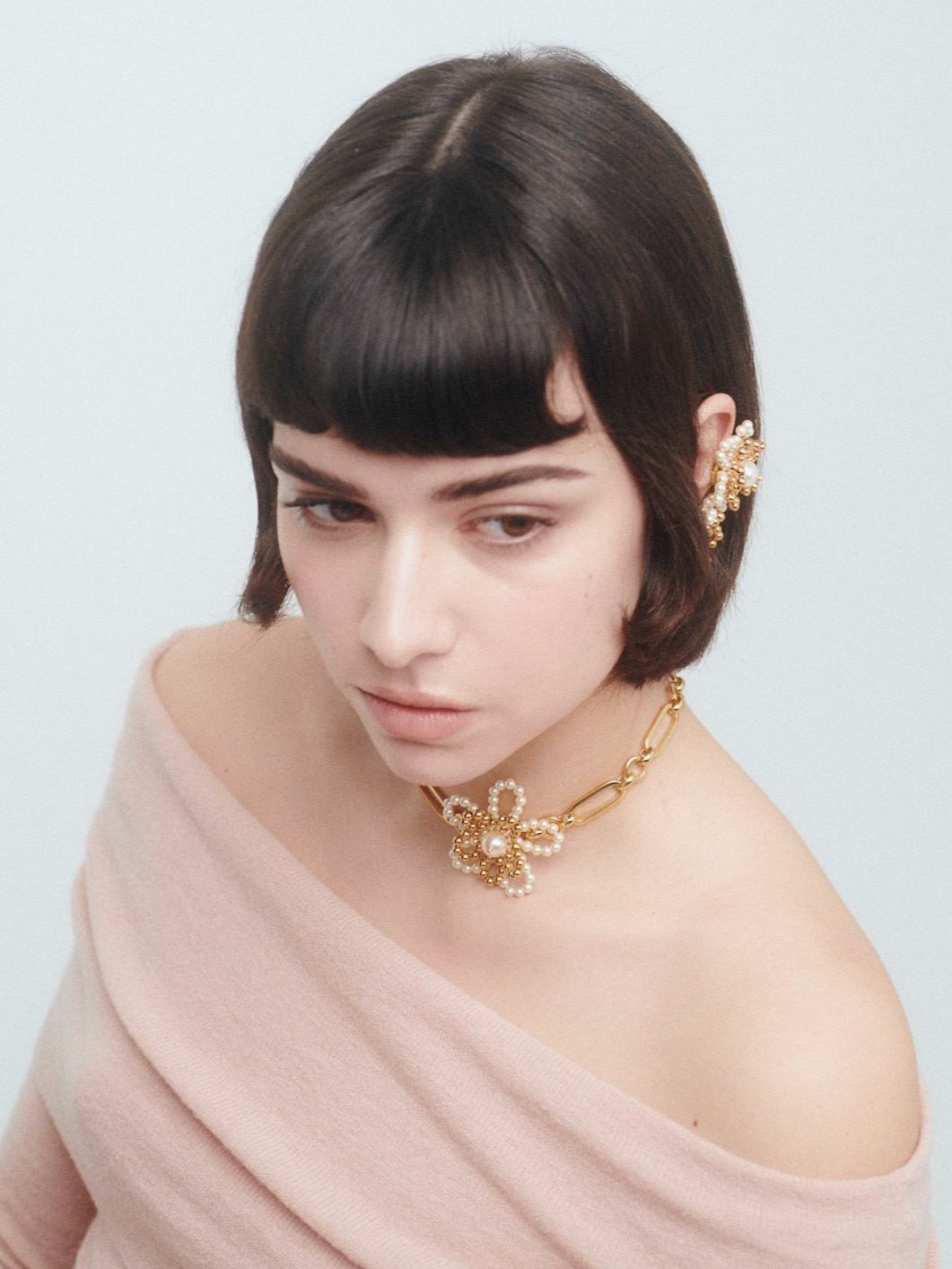 TYNVIE 不对称蝴蝶结领口两面穿T恤 - 白色