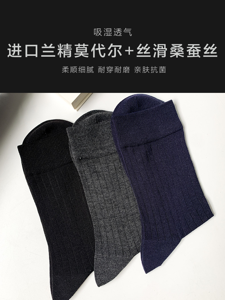 足装秀夏季男士轻薄高端商务袜莫代尔桑蚕丝凉感抗菌光泽纯色袜子