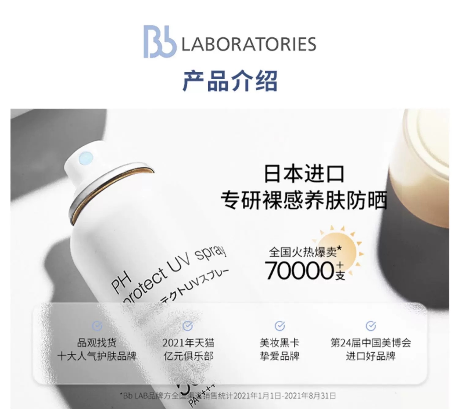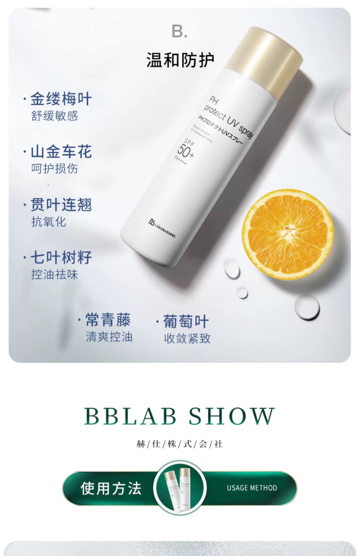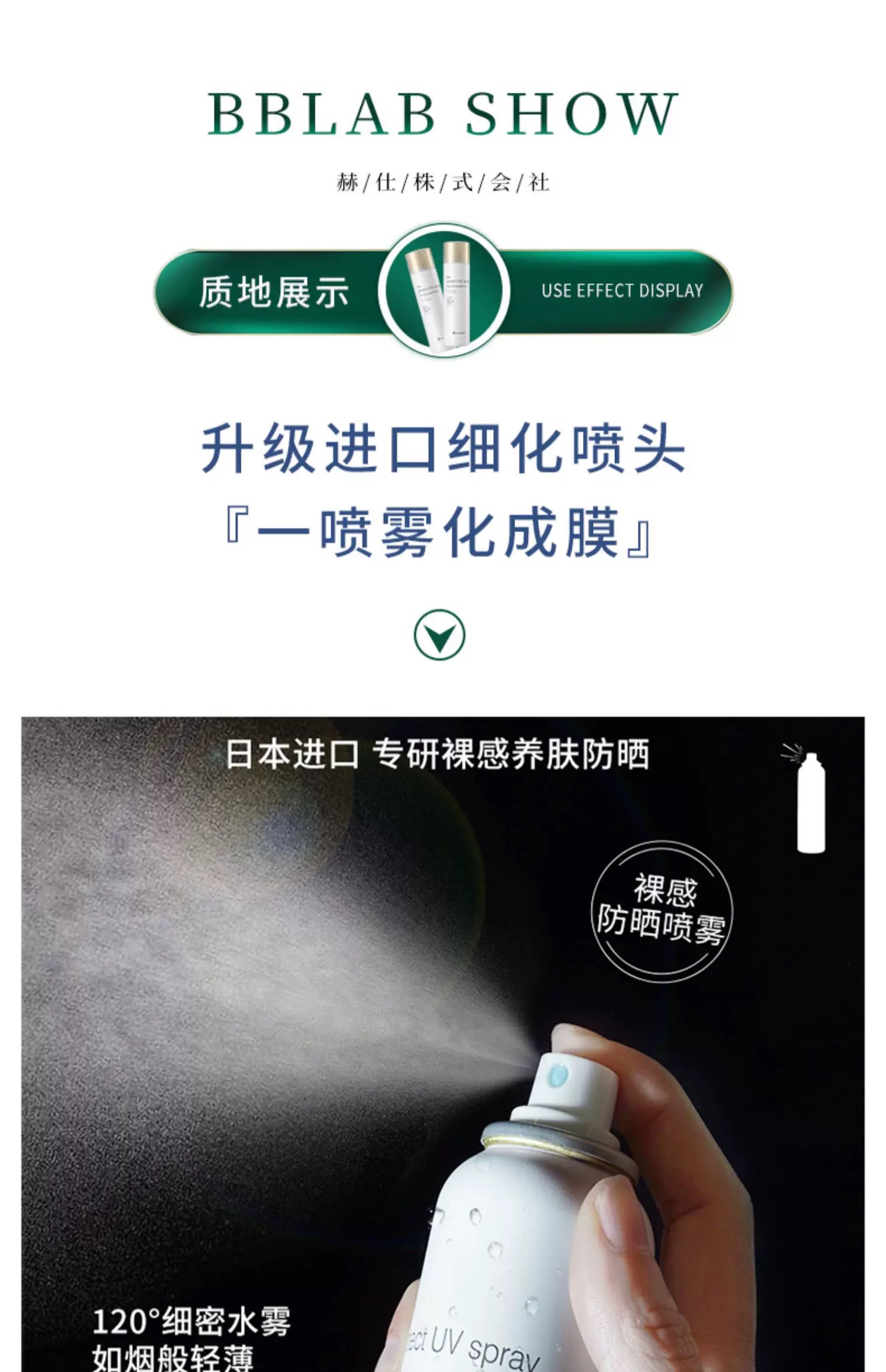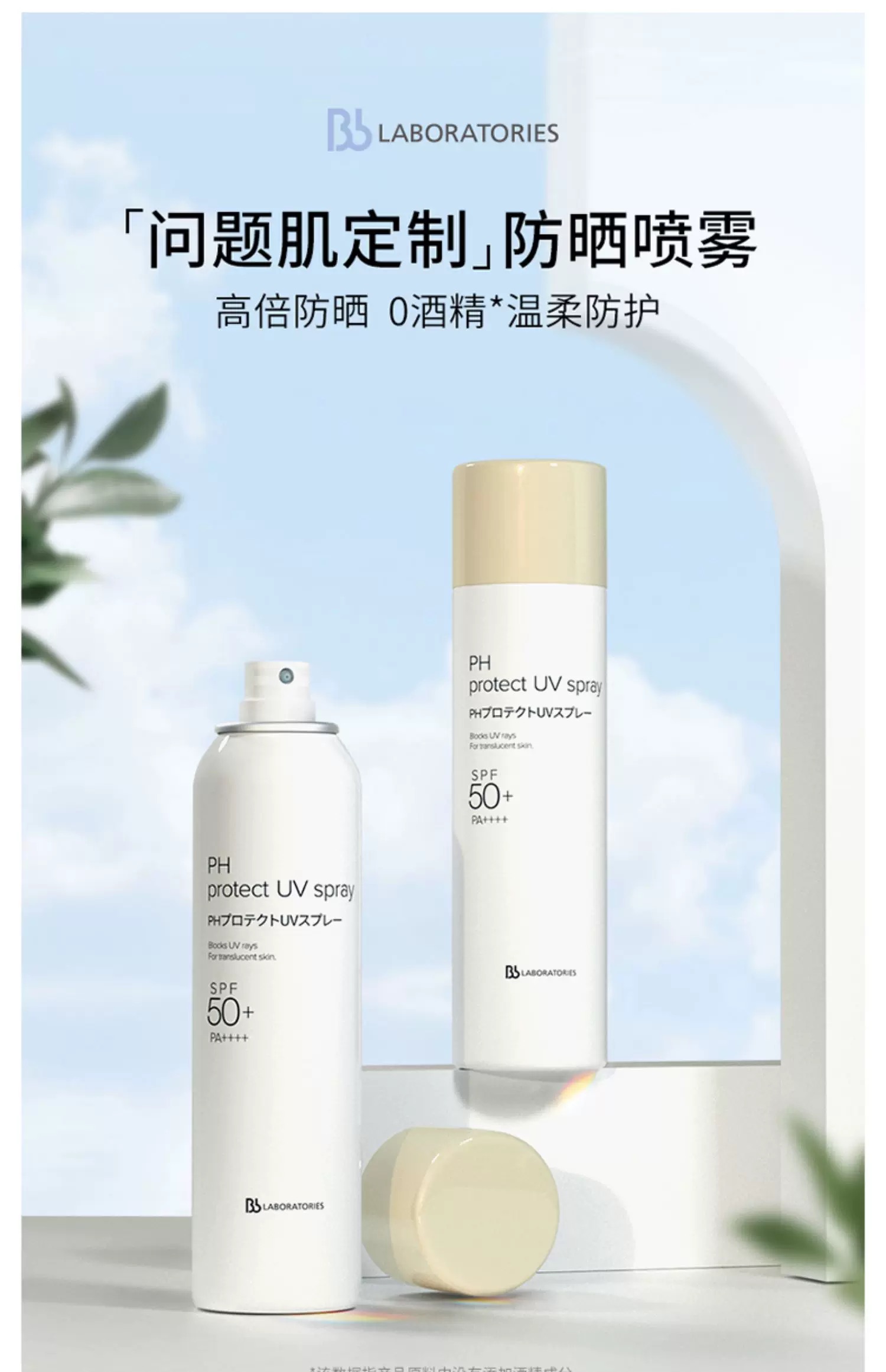 日本BBlab防晒喷雾SPF50+学生夏季PH清爽不油腻90g 复活草苾莱宝