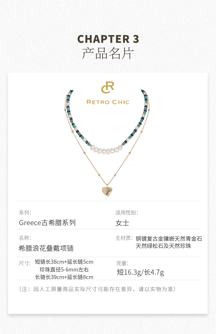 Retro Chic 意大利复古创意饰品 希腊浪花叠戴项链