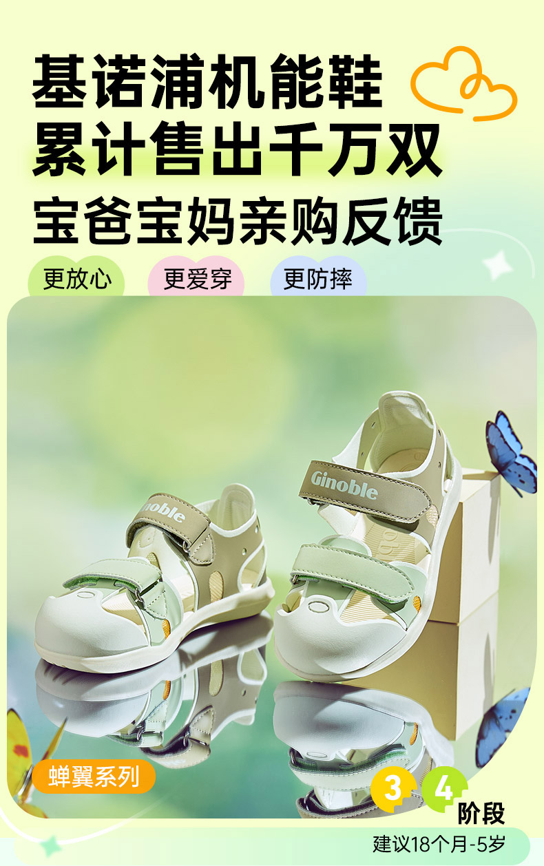 【私域团购】基诺浦夏季凉鞋小童机能鞋透气蝉翼GY1576