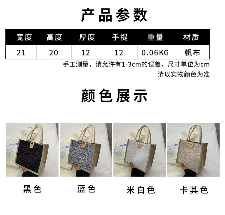 「买1送1!19.9到手两只」网红手提麻布包包女 洋气上班外出手拎便当袋日系ins小挎包箱包
