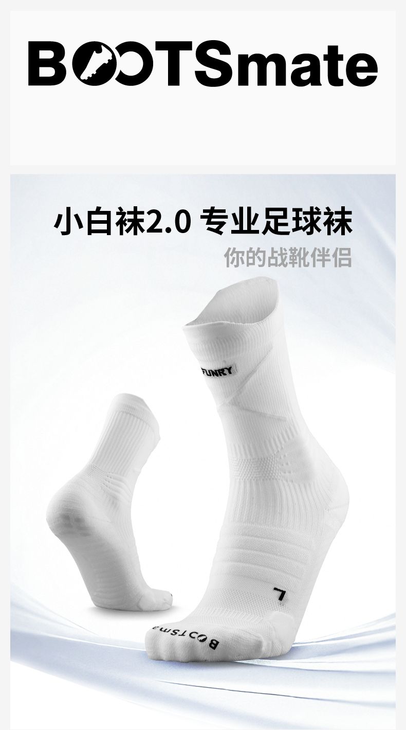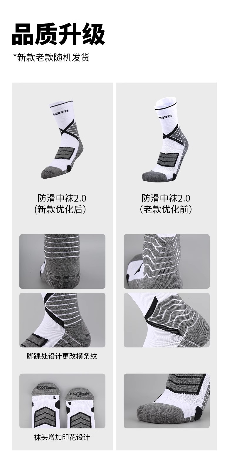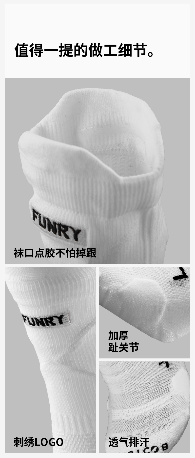 蜂锐电商专款运动防滑中袜 纯白色 小白袜2.0