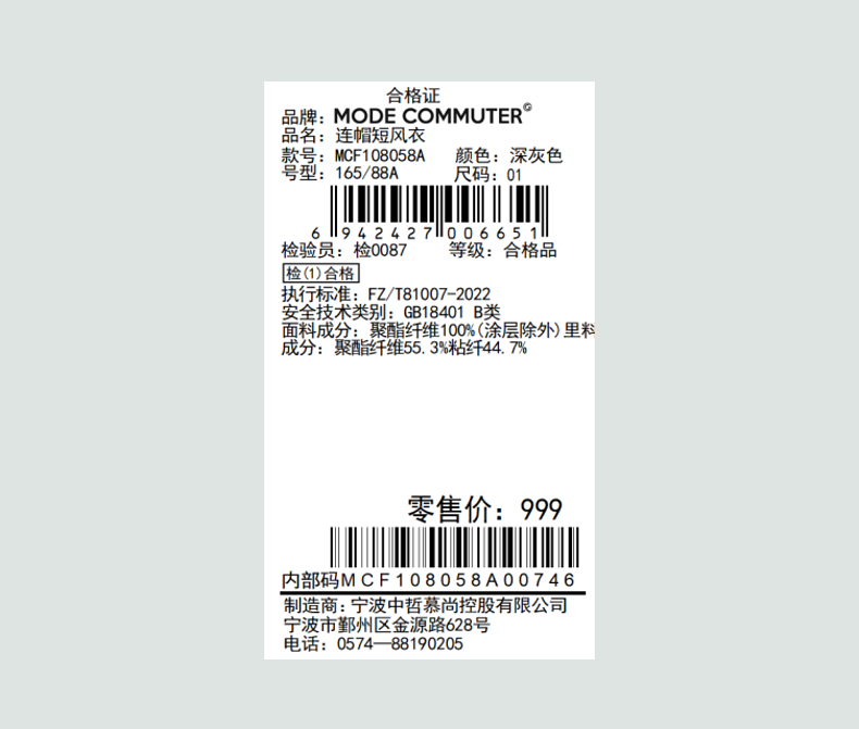 MODE COMMUTER | MC春季双层复合轻质防泼溅连帽风衣MCF108058A