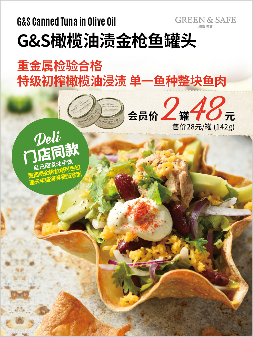 | 品名 | 2罐*G&S橄榄油浸金枪鱼罐头 GREEN&SAFE Canned Tuna in Olive Oil(2pcs) |
