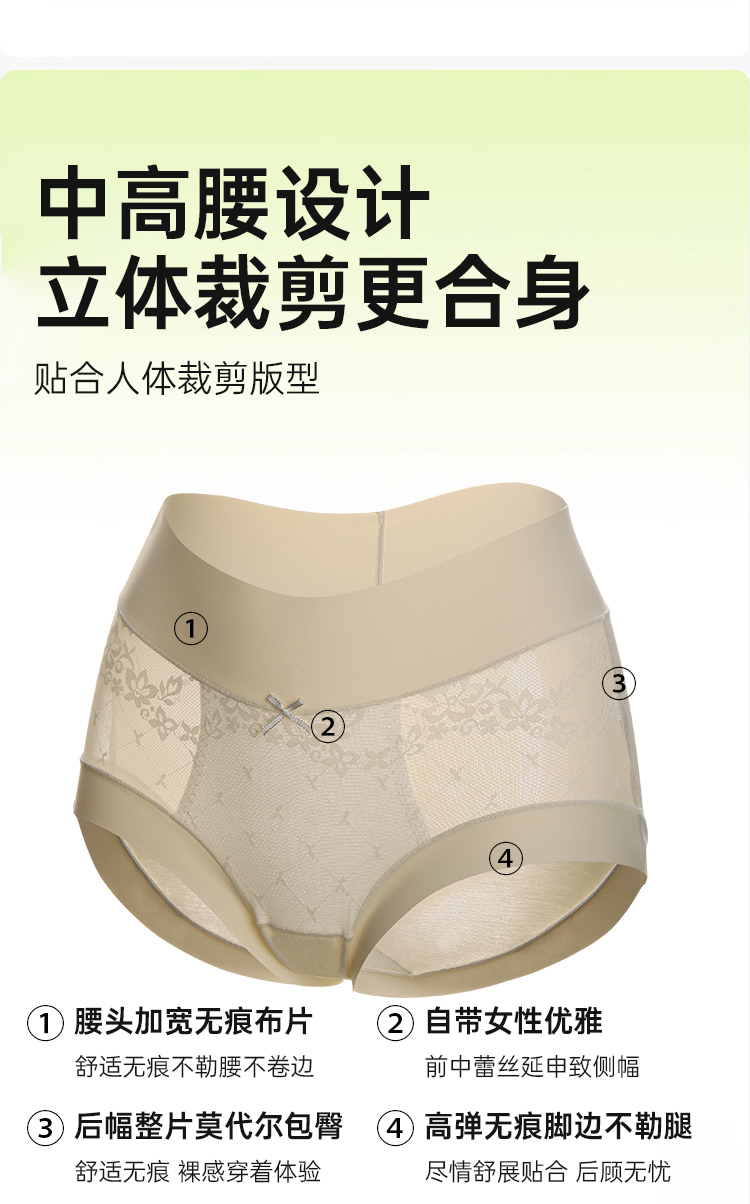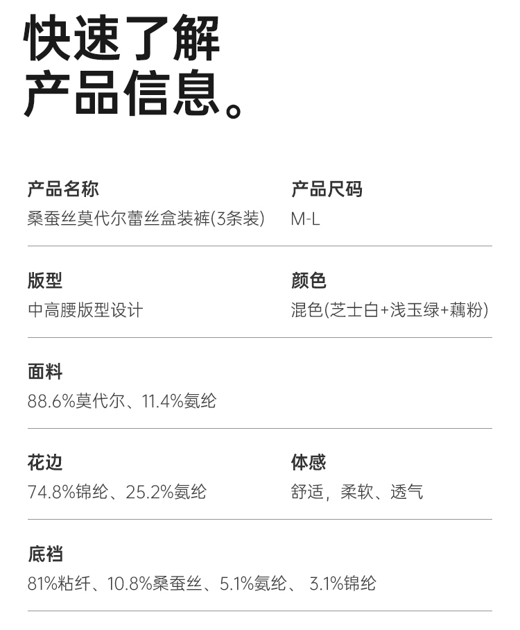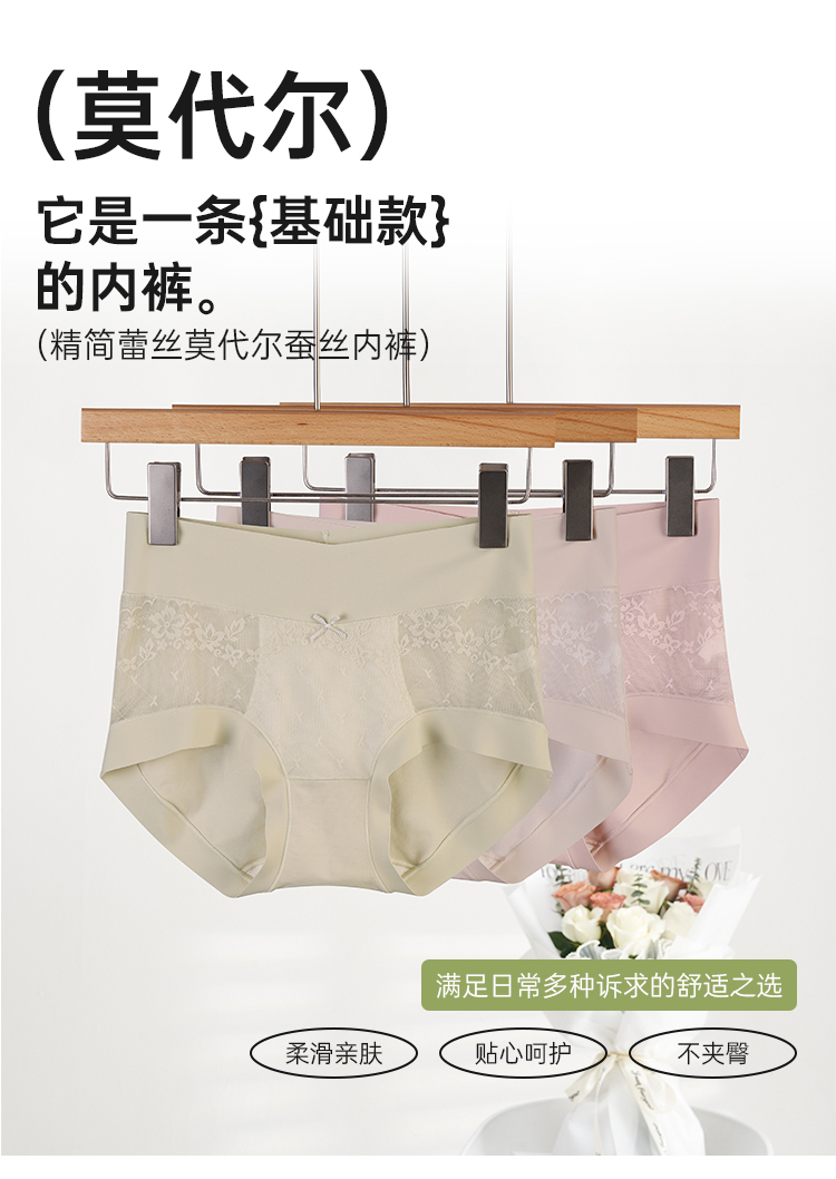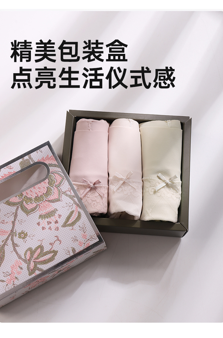 美奈川 桑蚕丝莫代尔蕾丝盒装裤 (3条盒装)