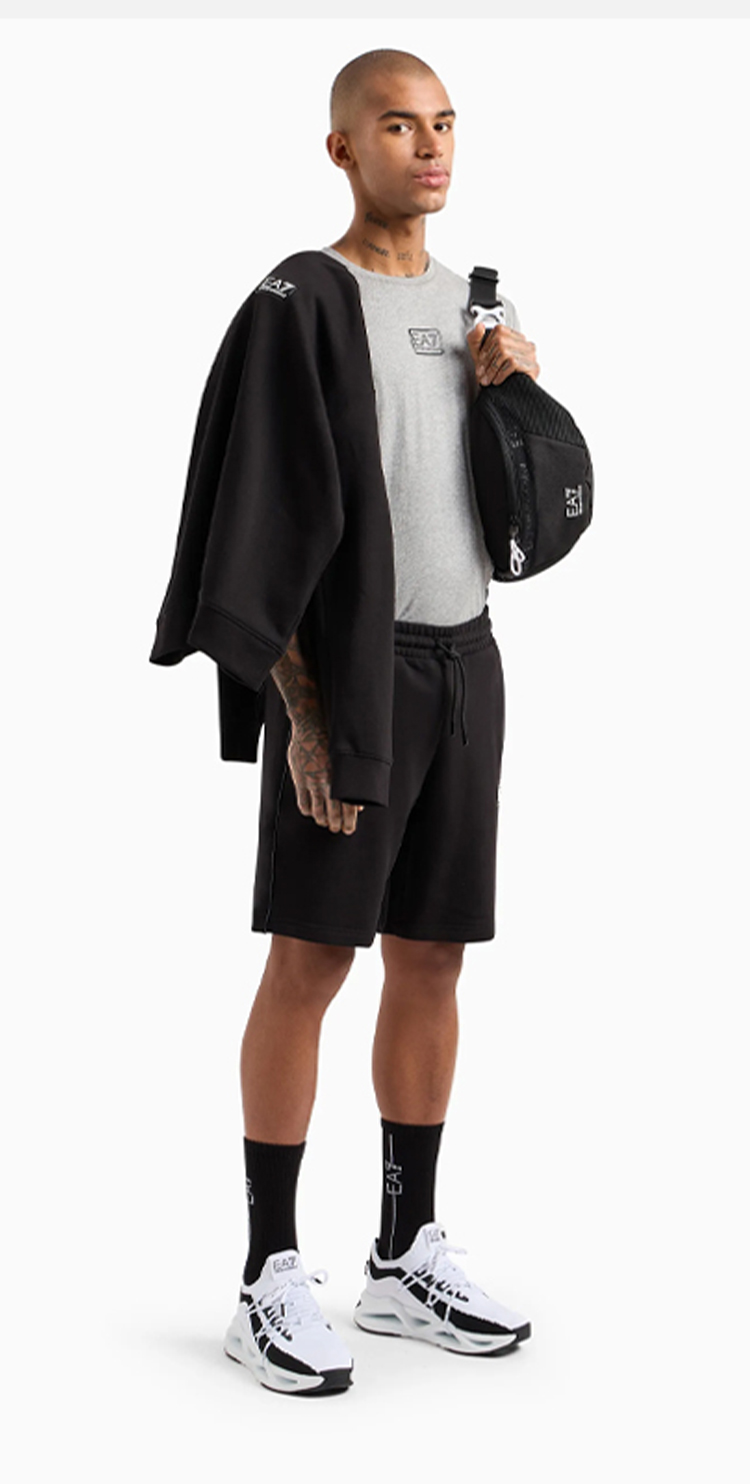 EMPORIO ARMANI EA7 阿玛尼 男士 EA7 徽标棉质休闲短裤 黑色 3DPS74 PJ07Z 1200