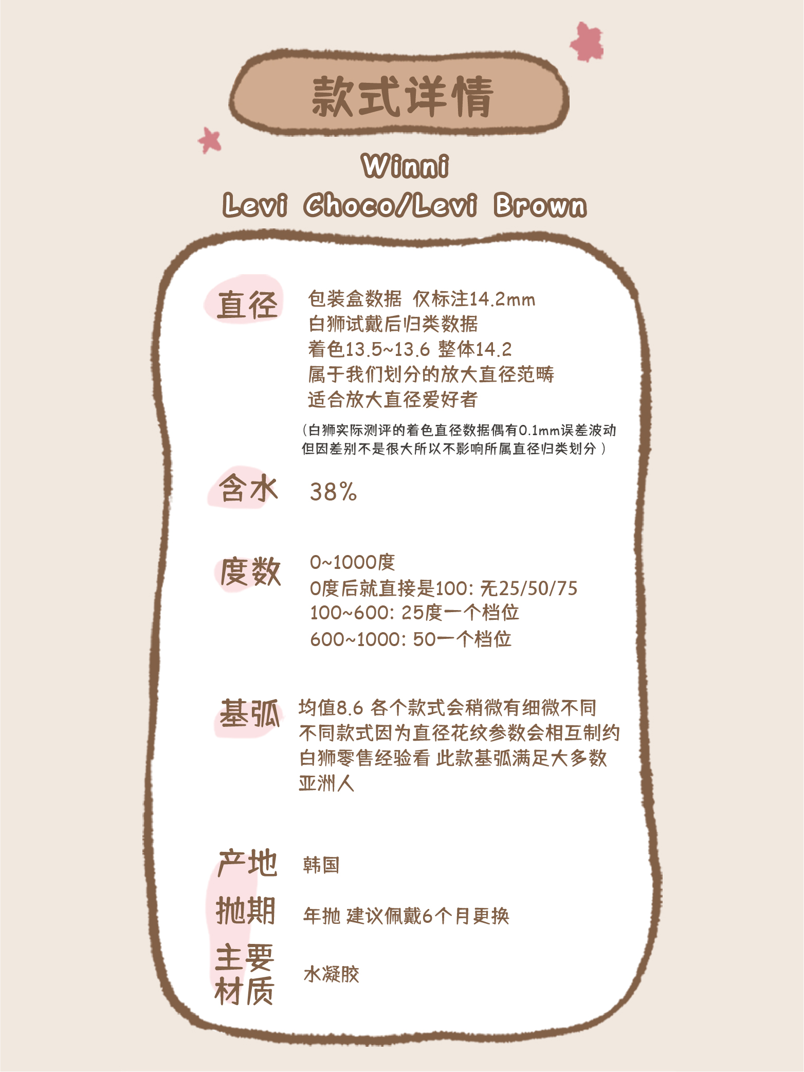 Winni旗下 · Levi Brown光环茶茶棕 ·14.2mm实际着色放大直径 年抛美瞳