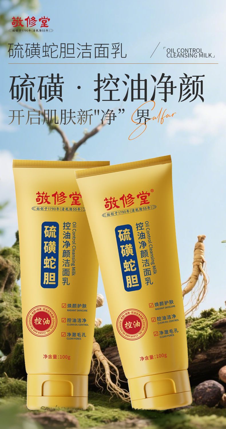【新品】【购物先领券】【春游记 买一送一】敬修堂硫磺蛇胆控油净颜洁面乳100ml 油痘肌适用