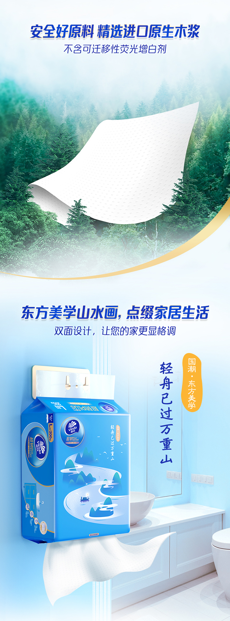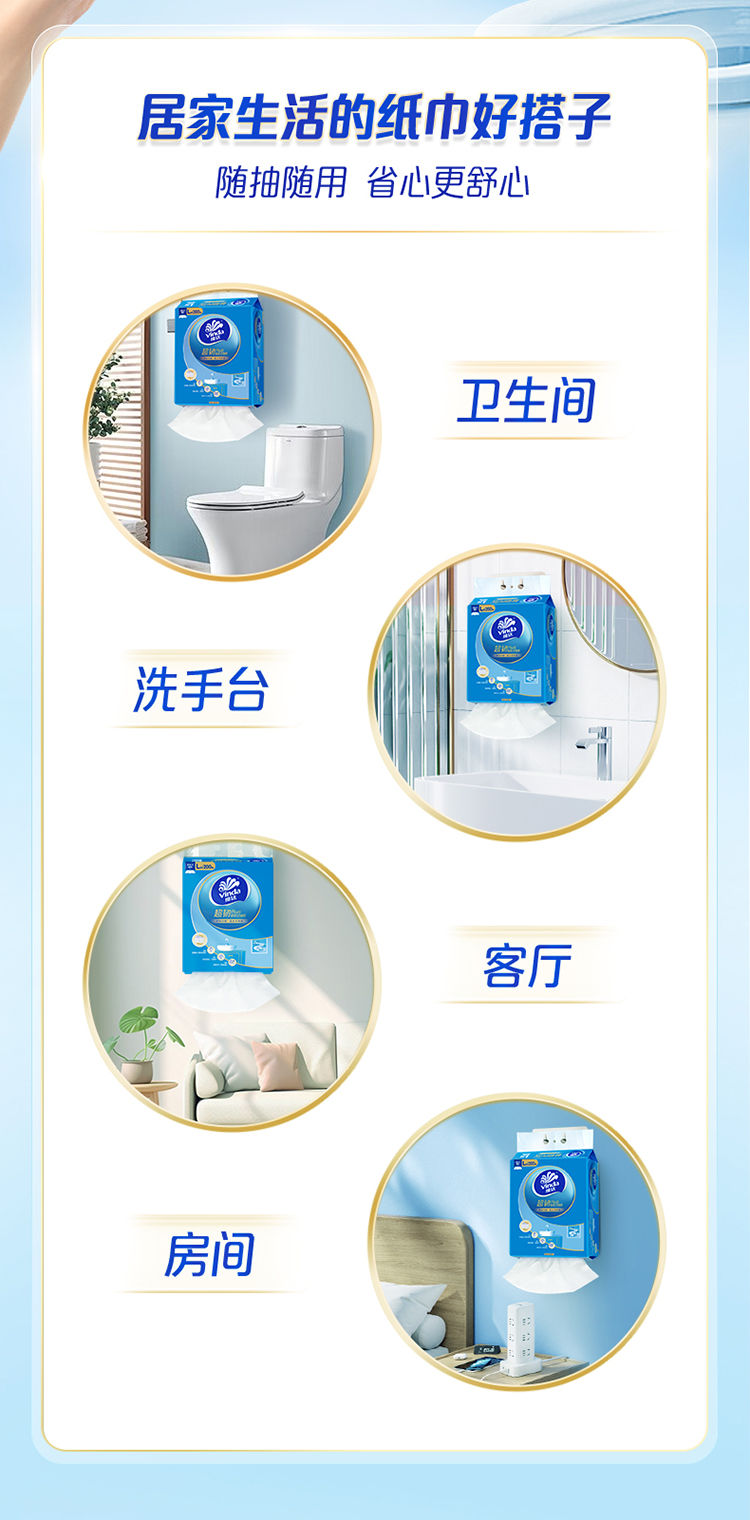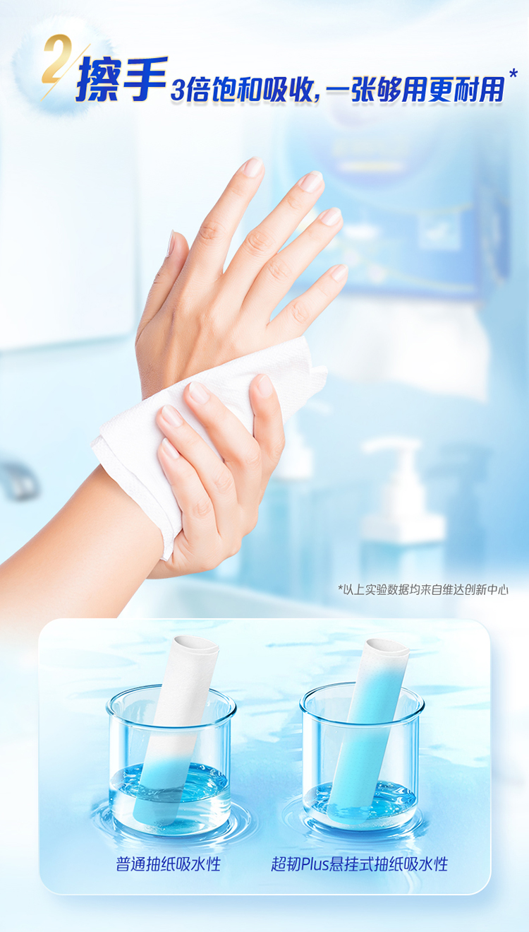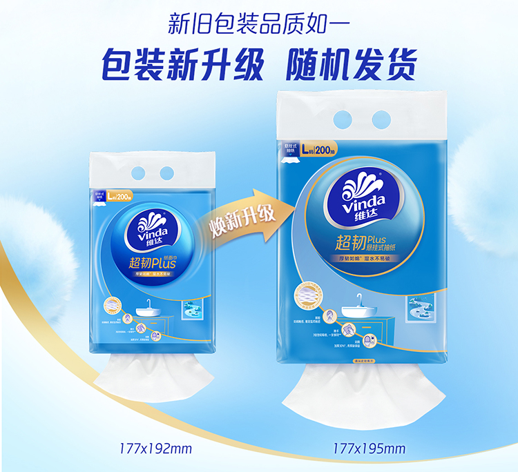 维达 悬挂式超韧plus抽纸L码大张3层200抽4包 湿水不易破 送挂钩 48小时发货