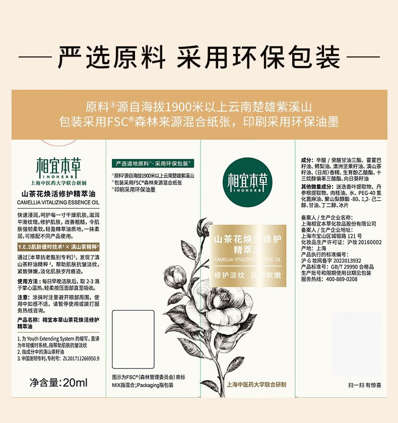【2026.4.4】相宜本草山茶花焕活修护精萃油20ml/瓶