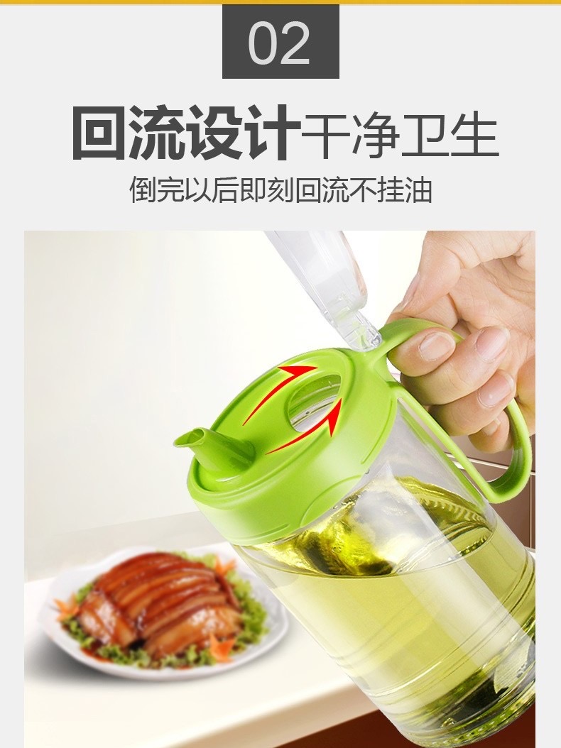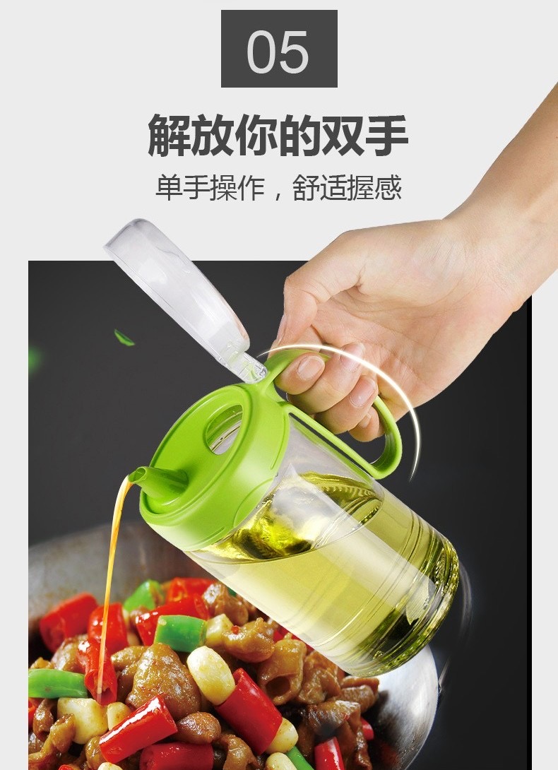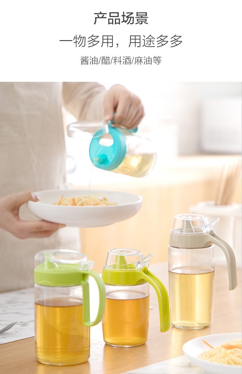 茶花玻璃油壶防漏酱油瓶醋瓶厨房用品 530ML绿色1个