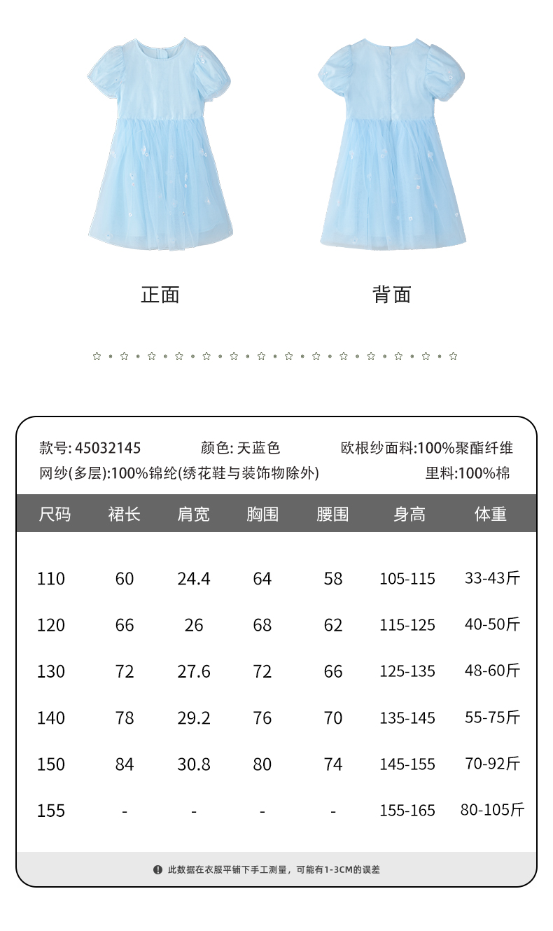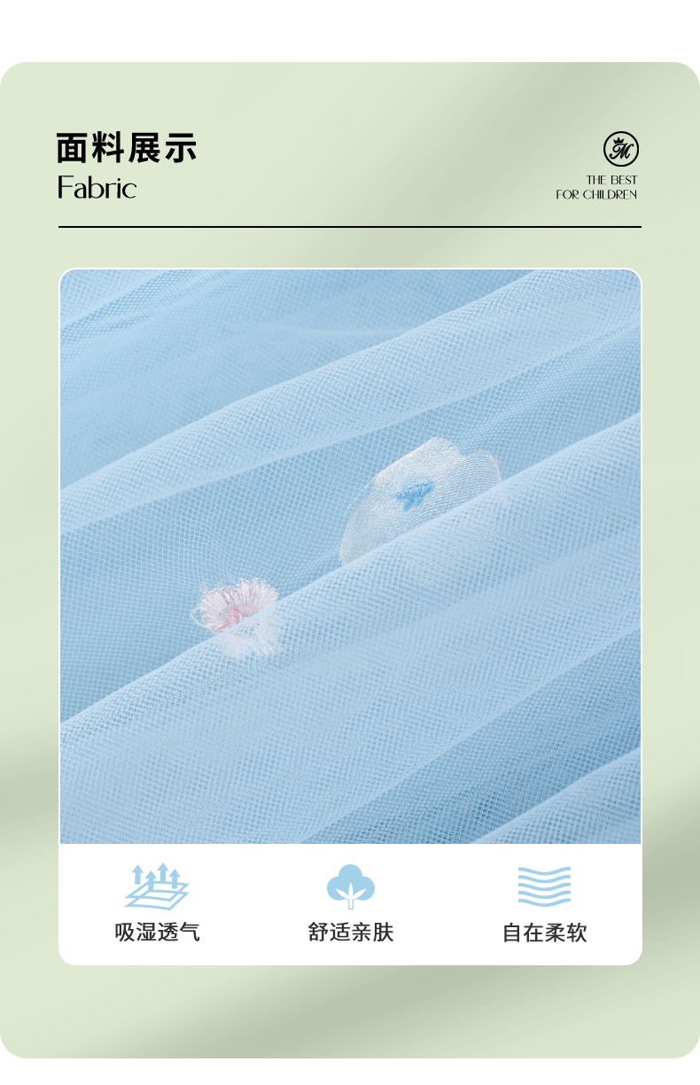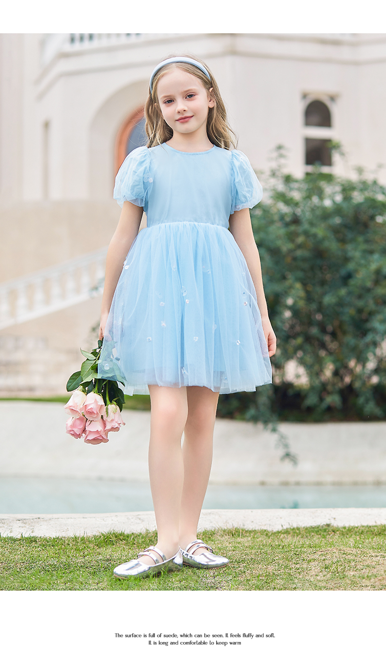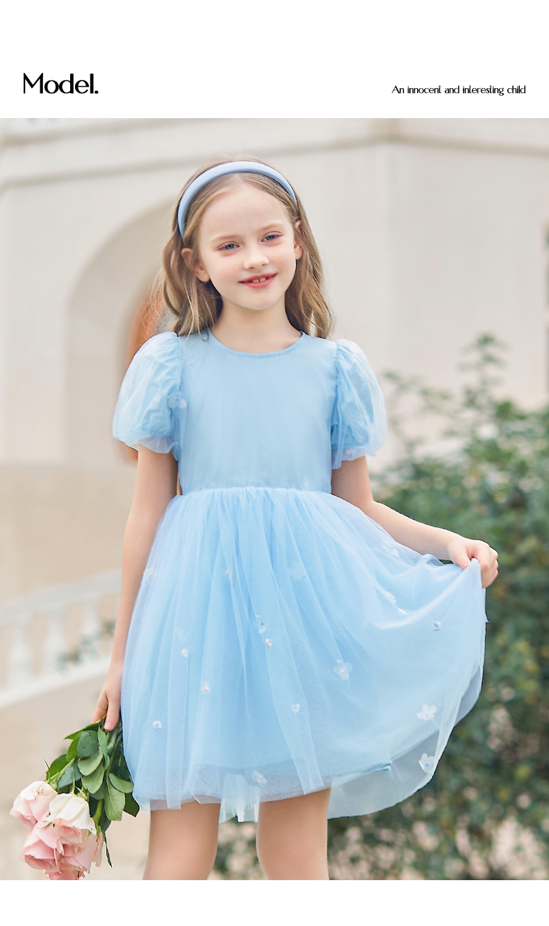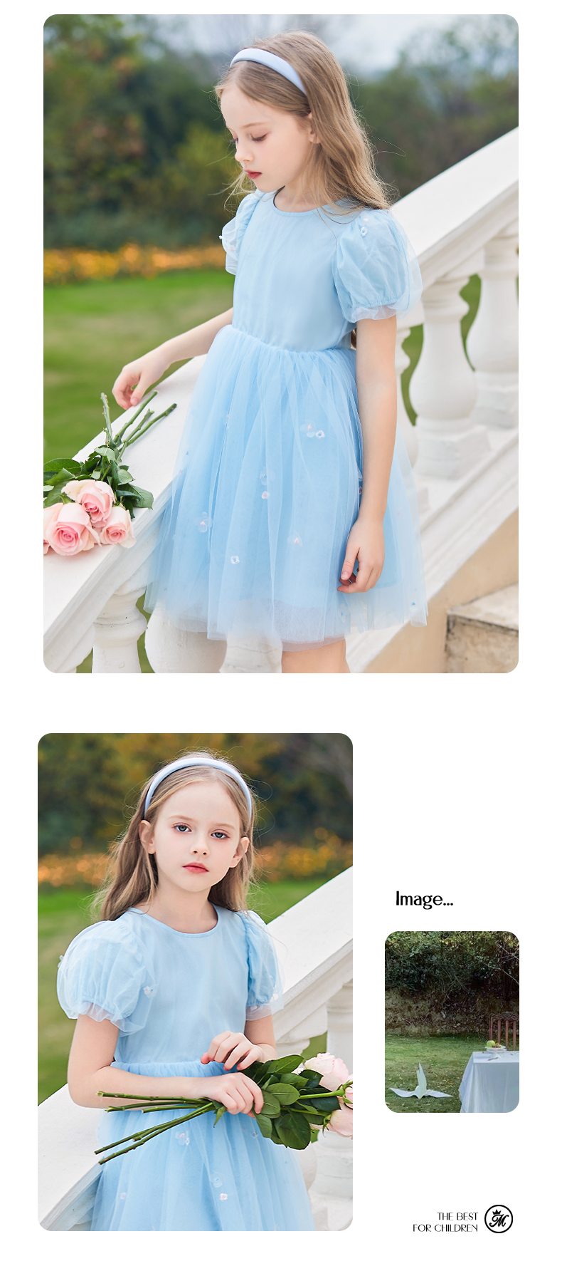 mettekids女童连衣裙夏季儿童网纱公主裙大童洋气时髦天蓝色裙子