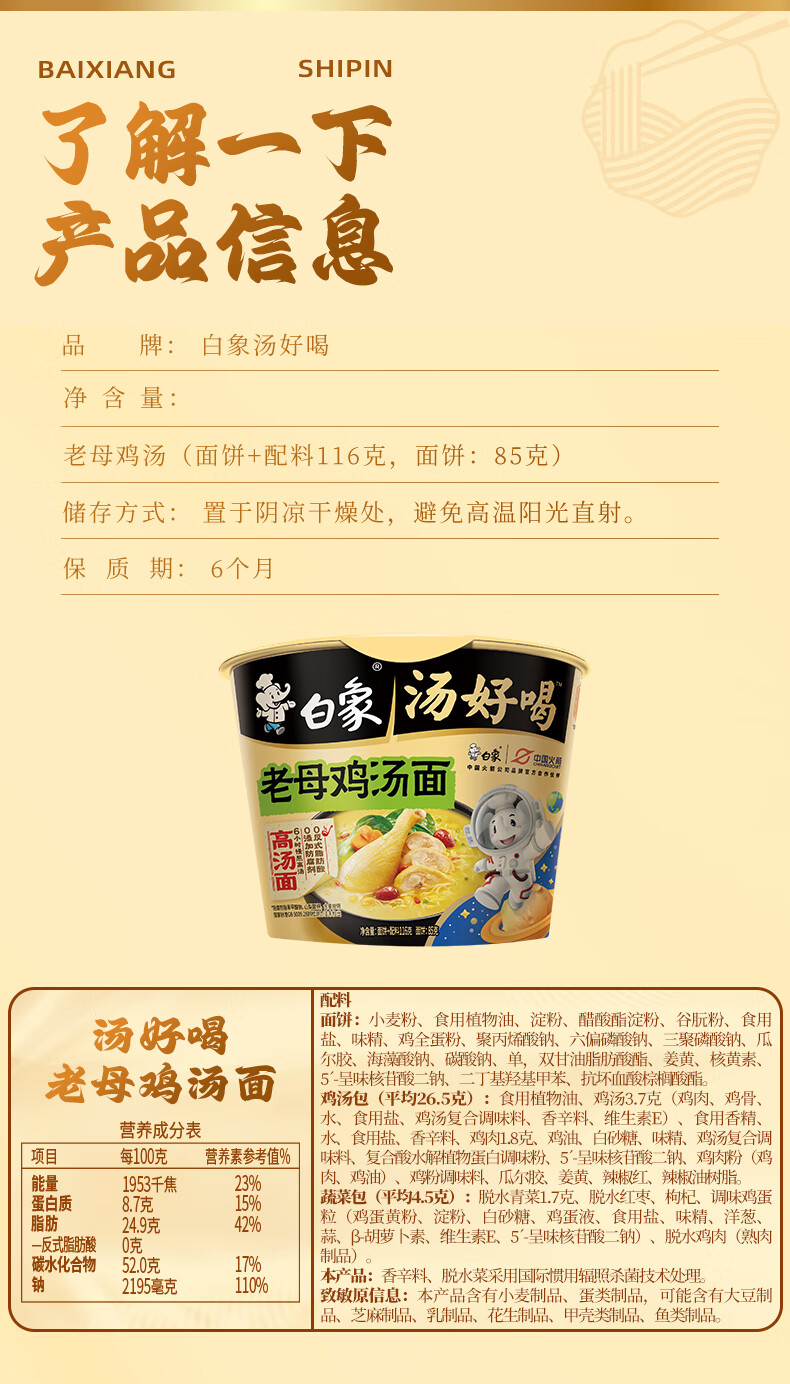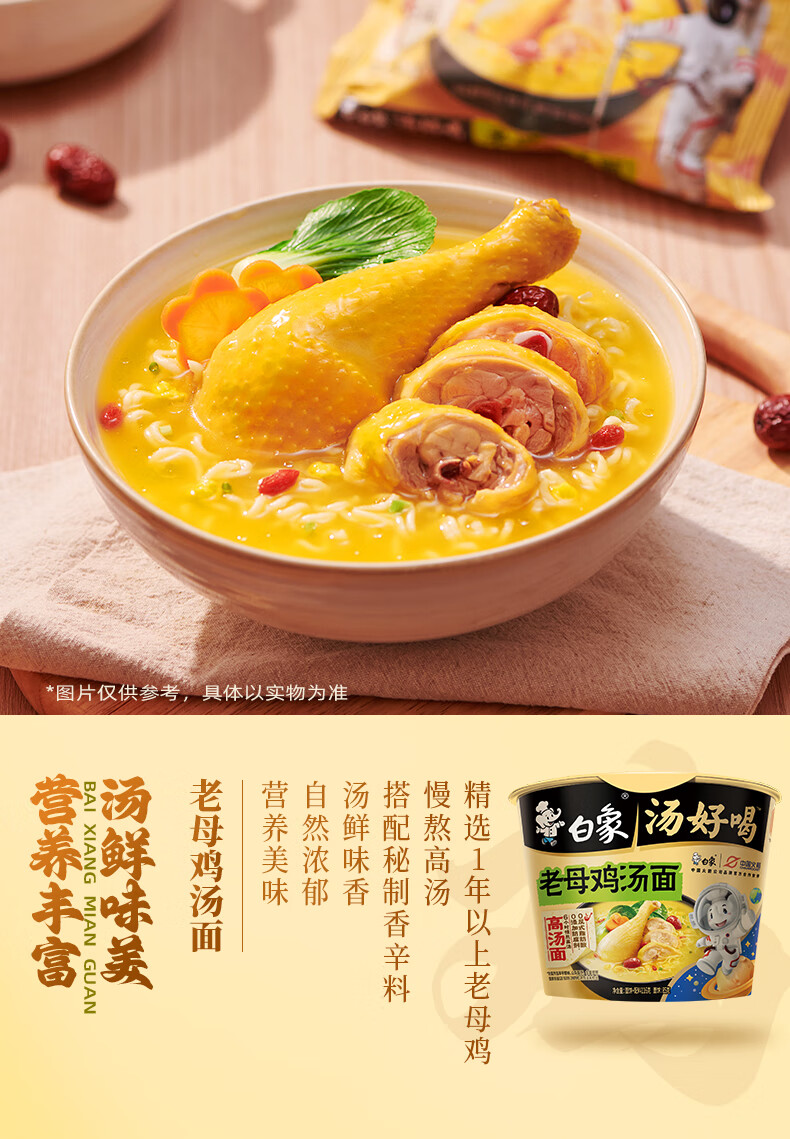 【分仓直发包邮】白象汤好喝桶方便面老母鸡汤面116g*12桶