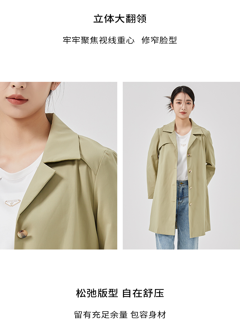 oldcolour2023春季新款卡其色时尚气质宽松风衣外套女O12047247
