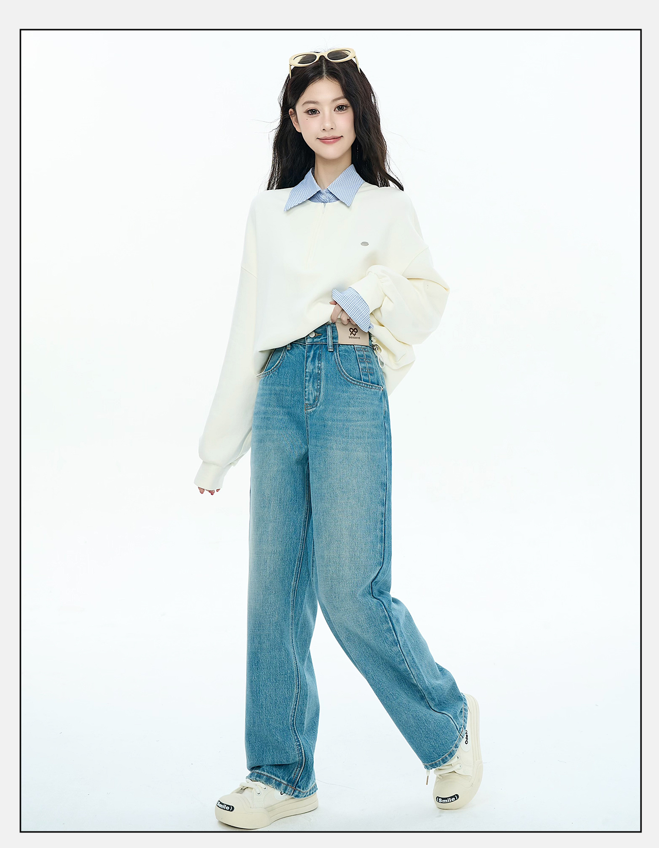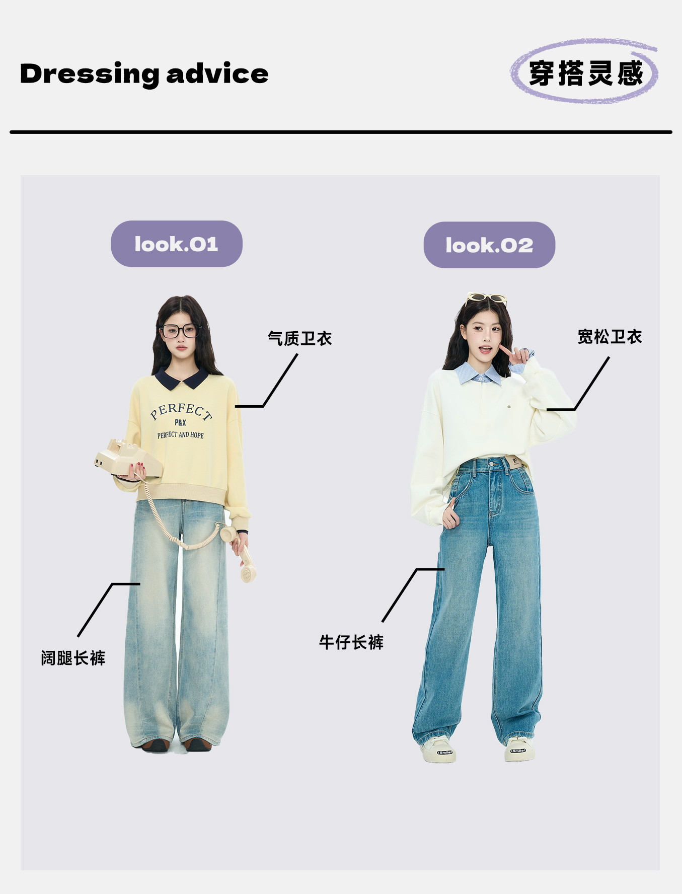 P&X设计师女装2025秋季学院风萝卜型百搭牛仔长裤 825310247 蓝色