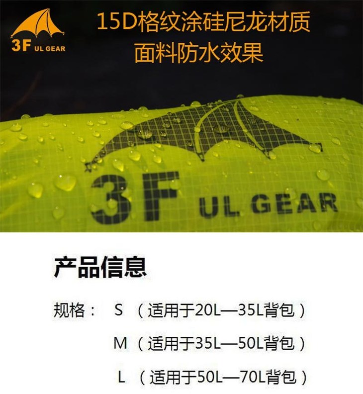三峰出 15D 涂硅 中号超轻背包罩防雨罩(35L-50L) BBZ004