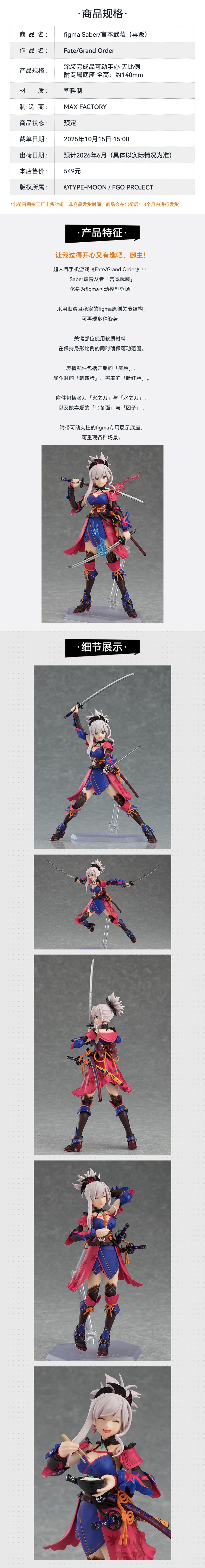 【GSC预售定金】figma Saber/宫本武藏 Fate/Grand Order