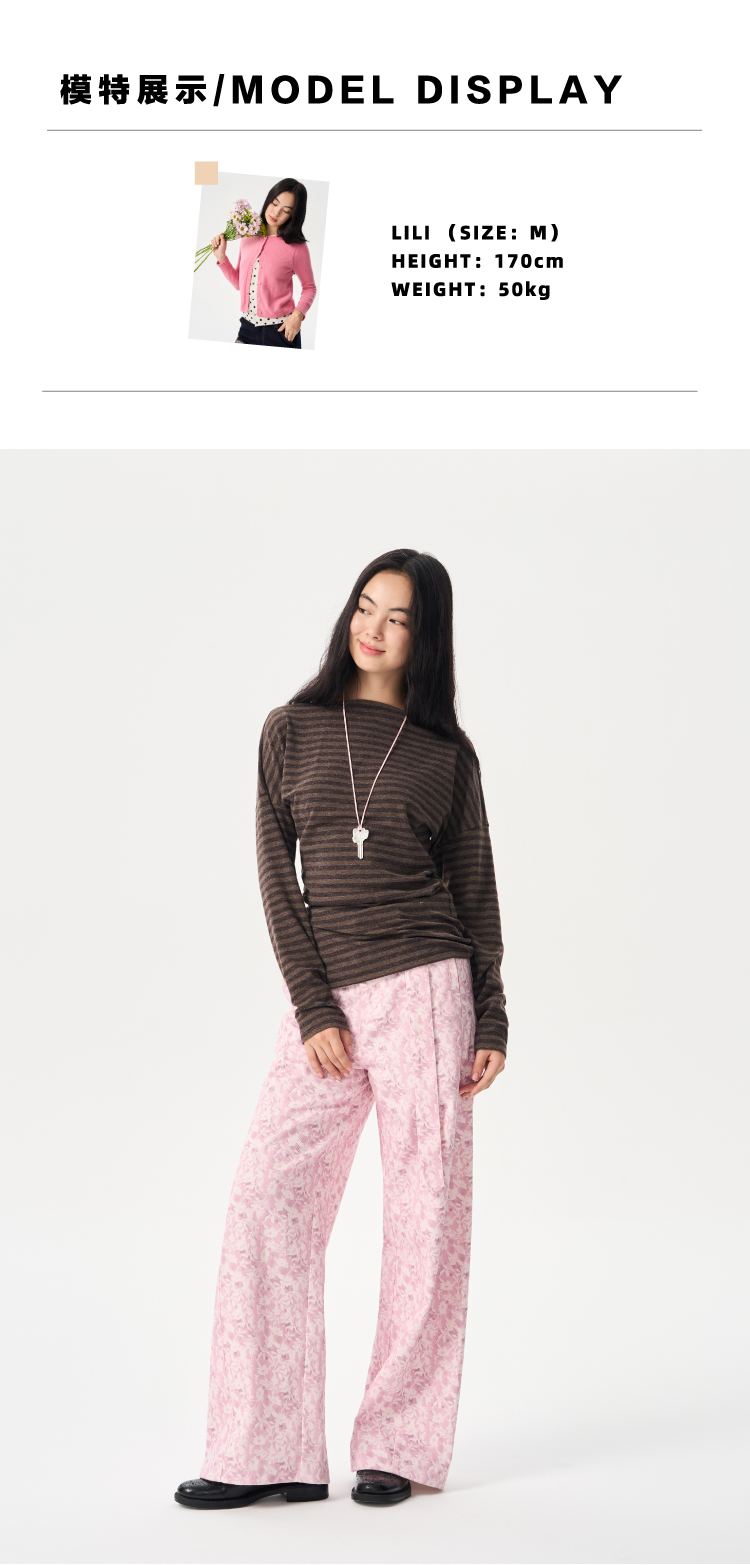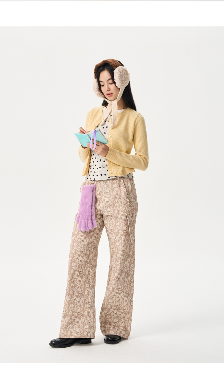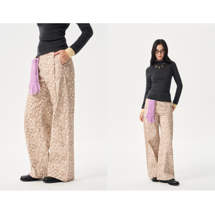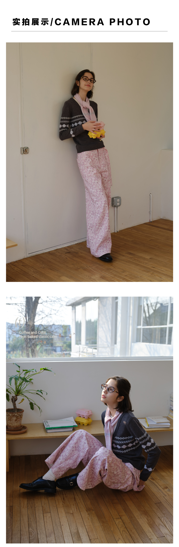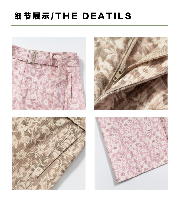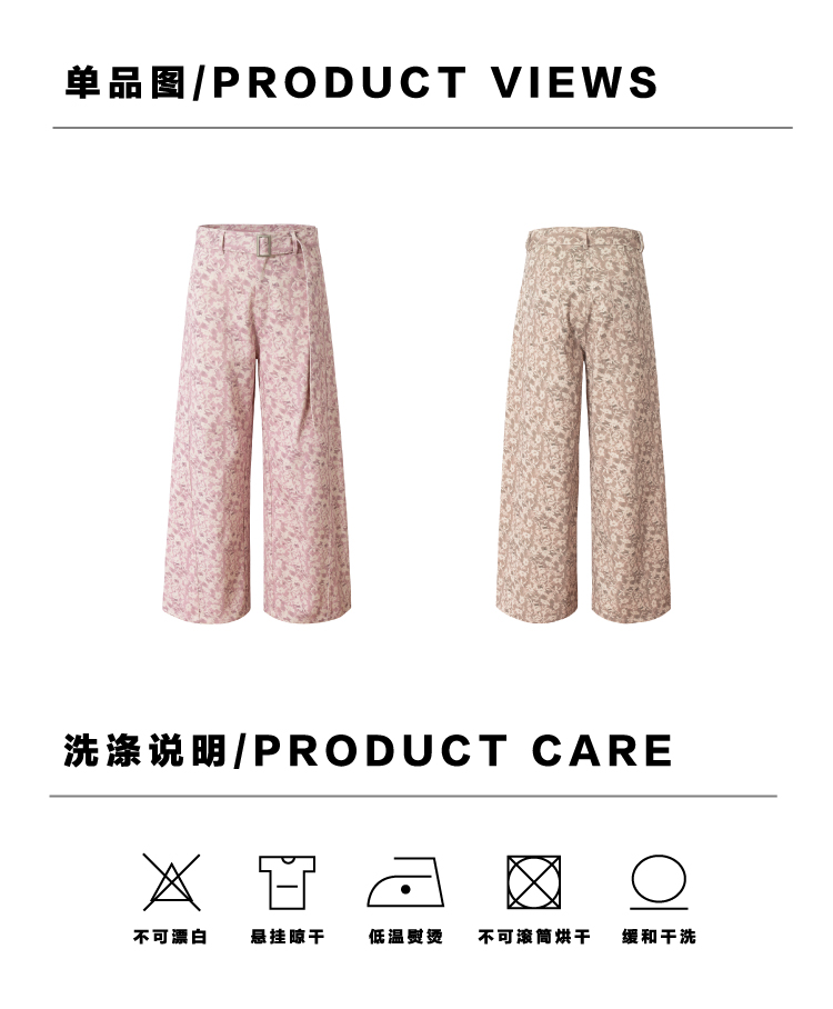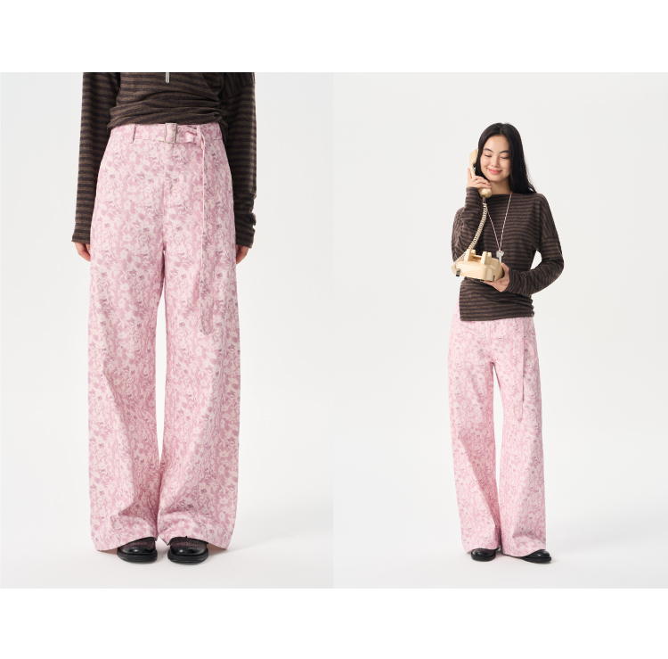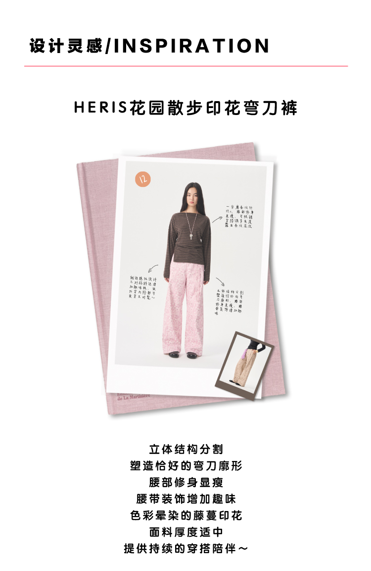 heris/H54108/‘花园散步’印花 立体分割显瘦 腰带弯刀阔腿裤