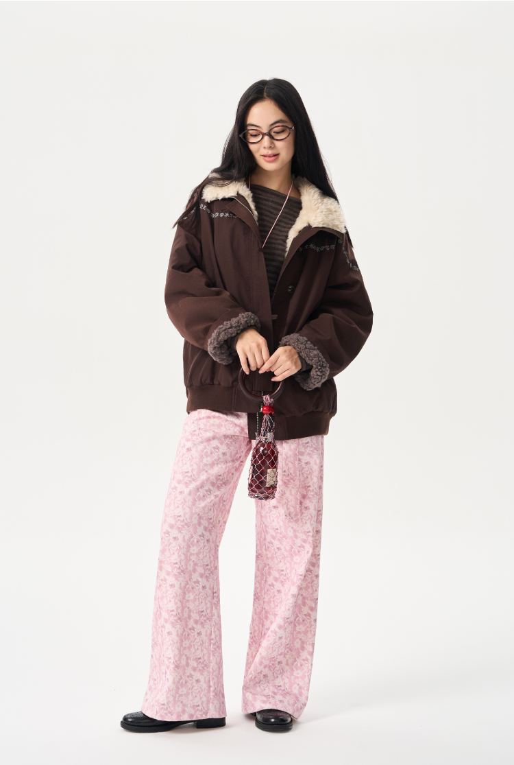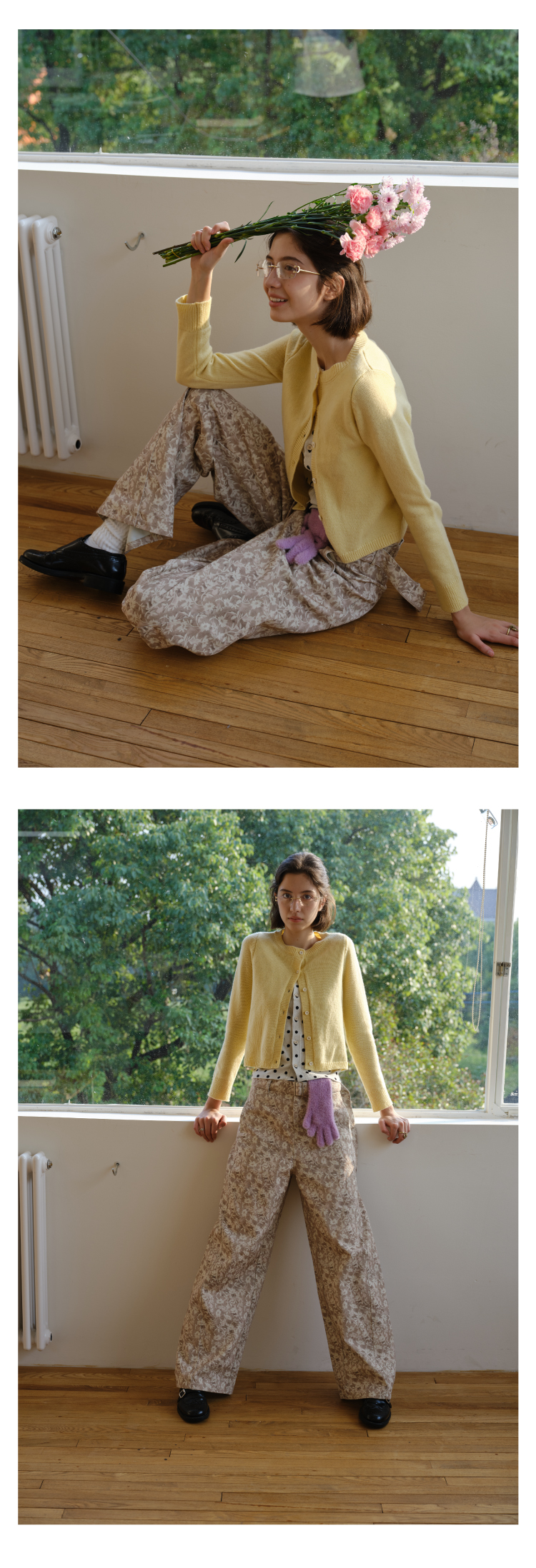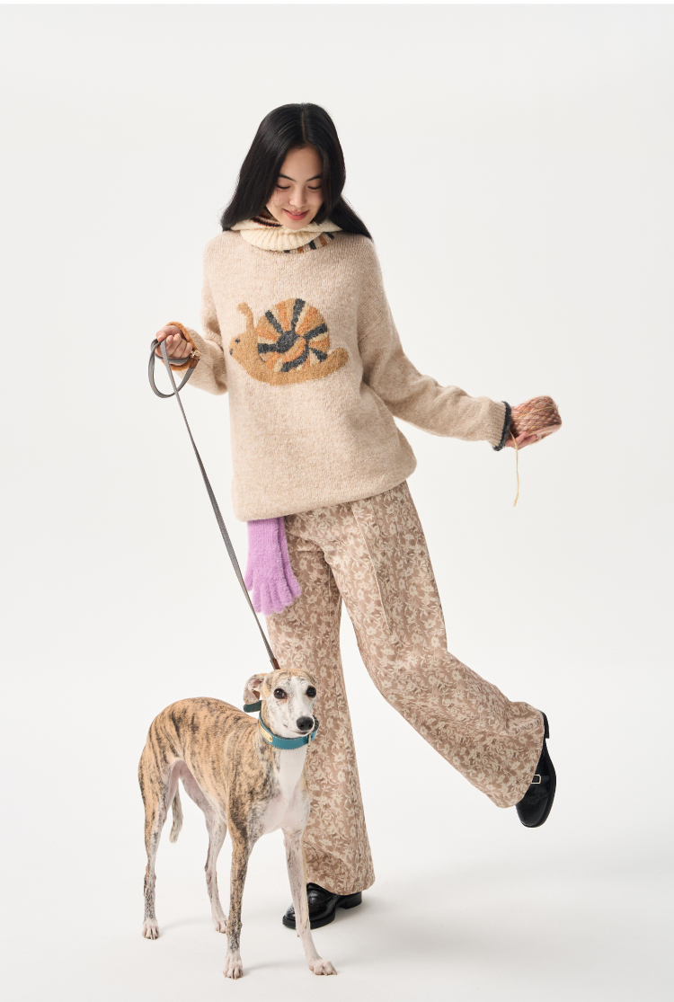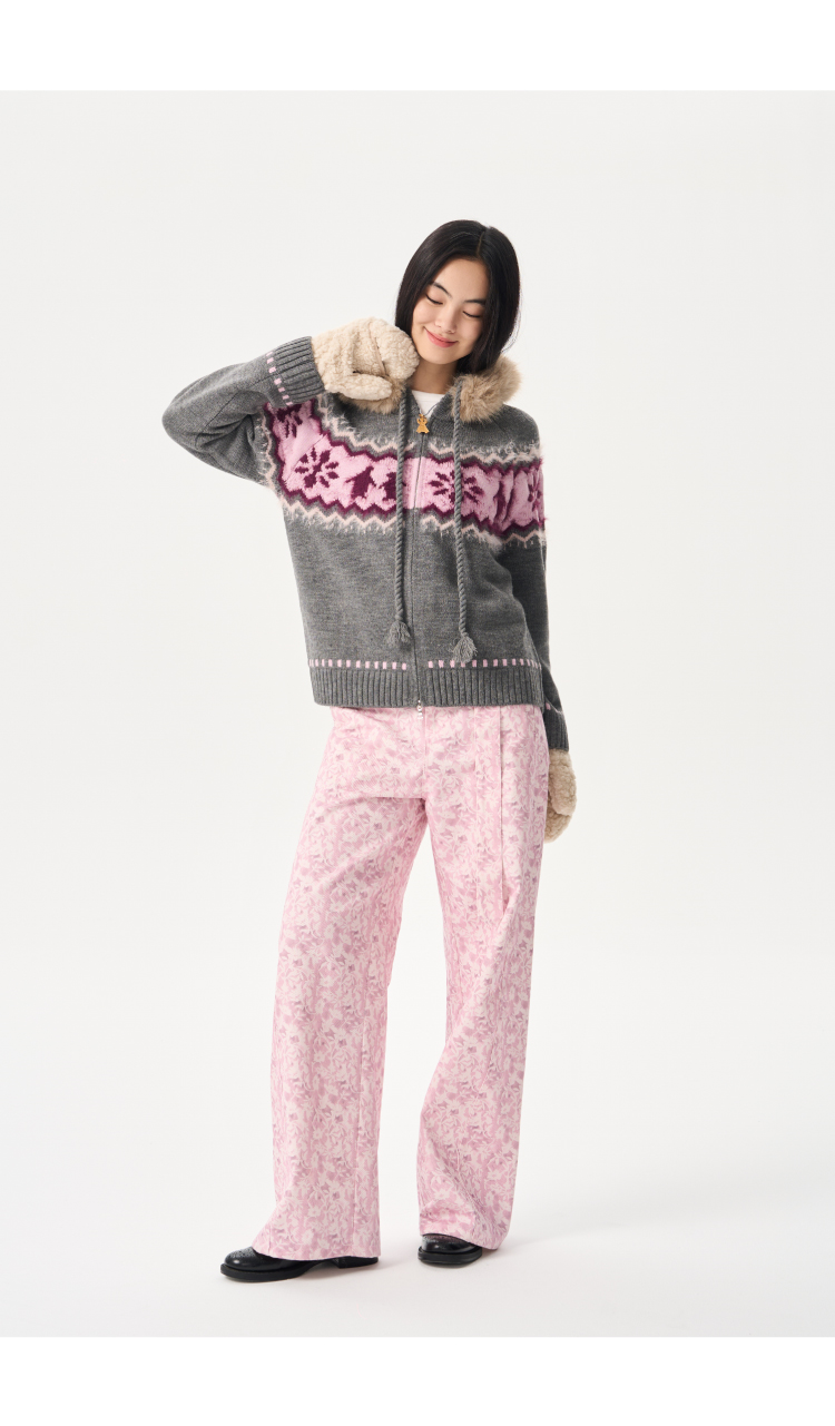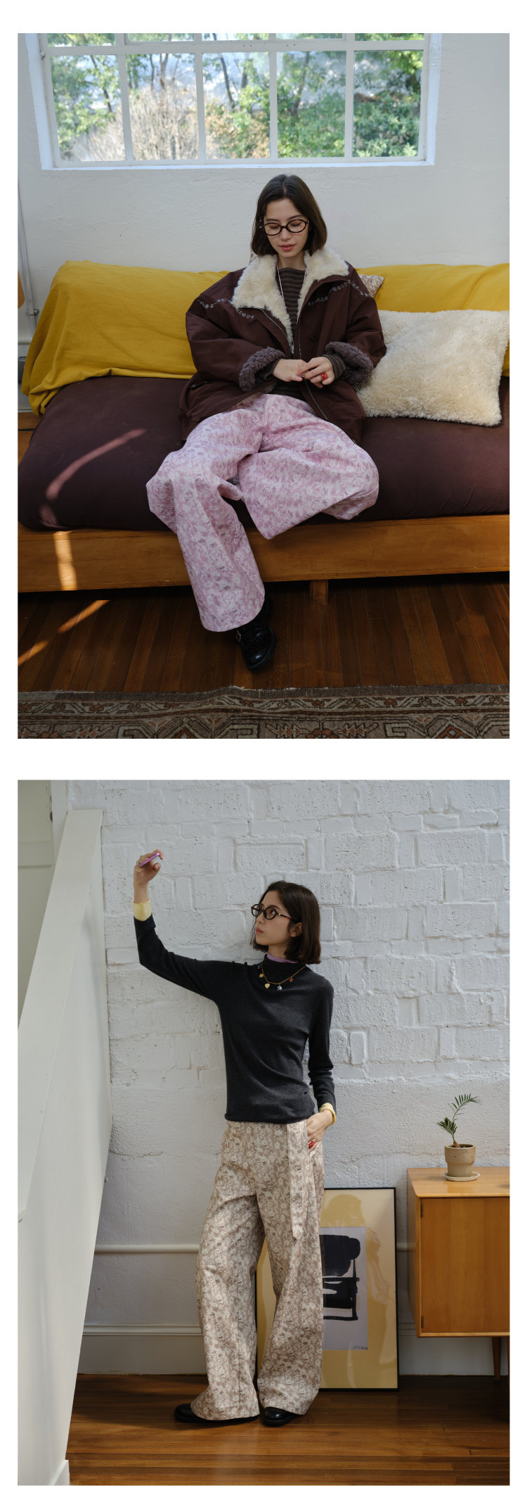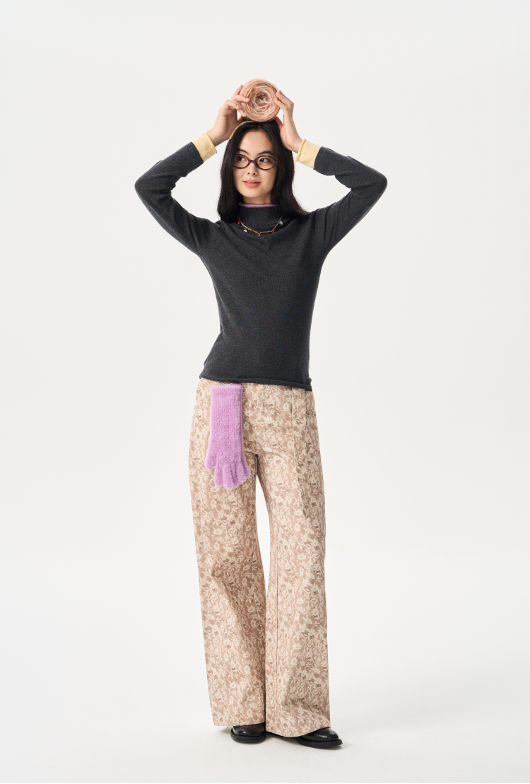 heris/H54108/‘花园散步’印花 立体分割显瘦 腰带弯刀阔腿裤