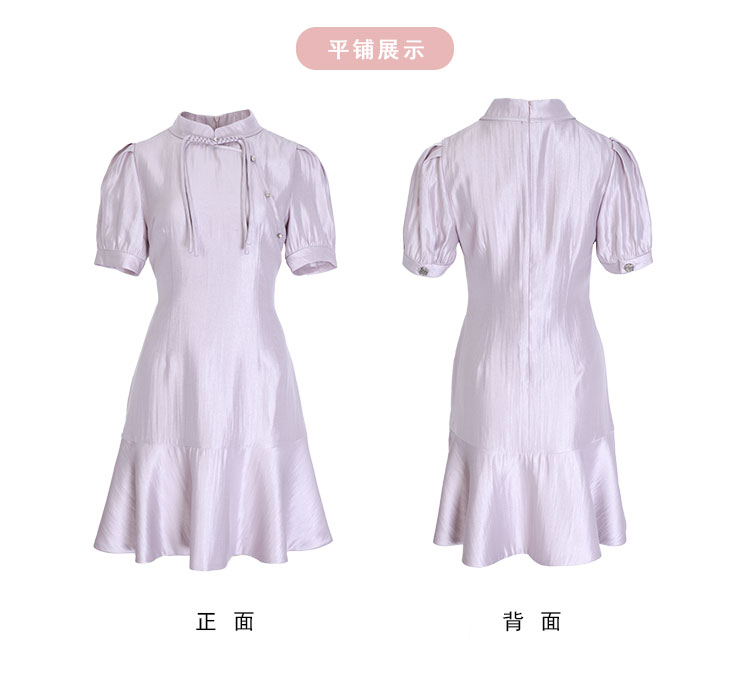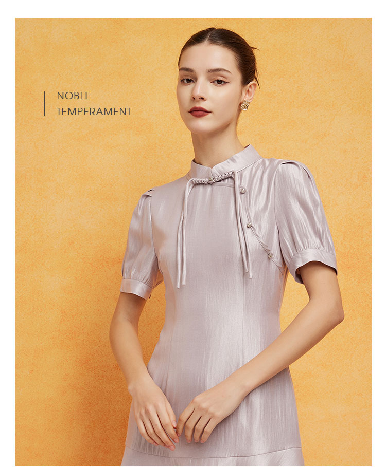 PF8D7斯尔丽24新款改良旗袍式鱼尾浪漫下摆流苏盘扣精致时尚减龄连衣裙