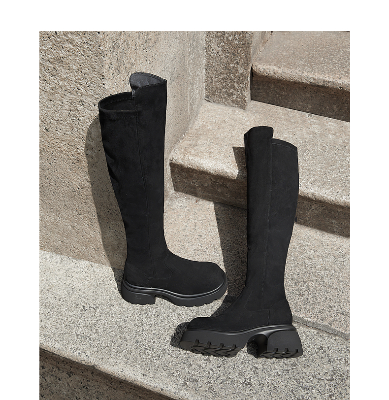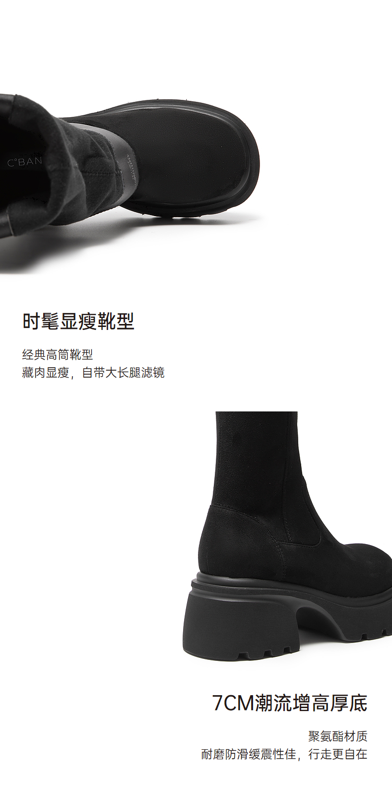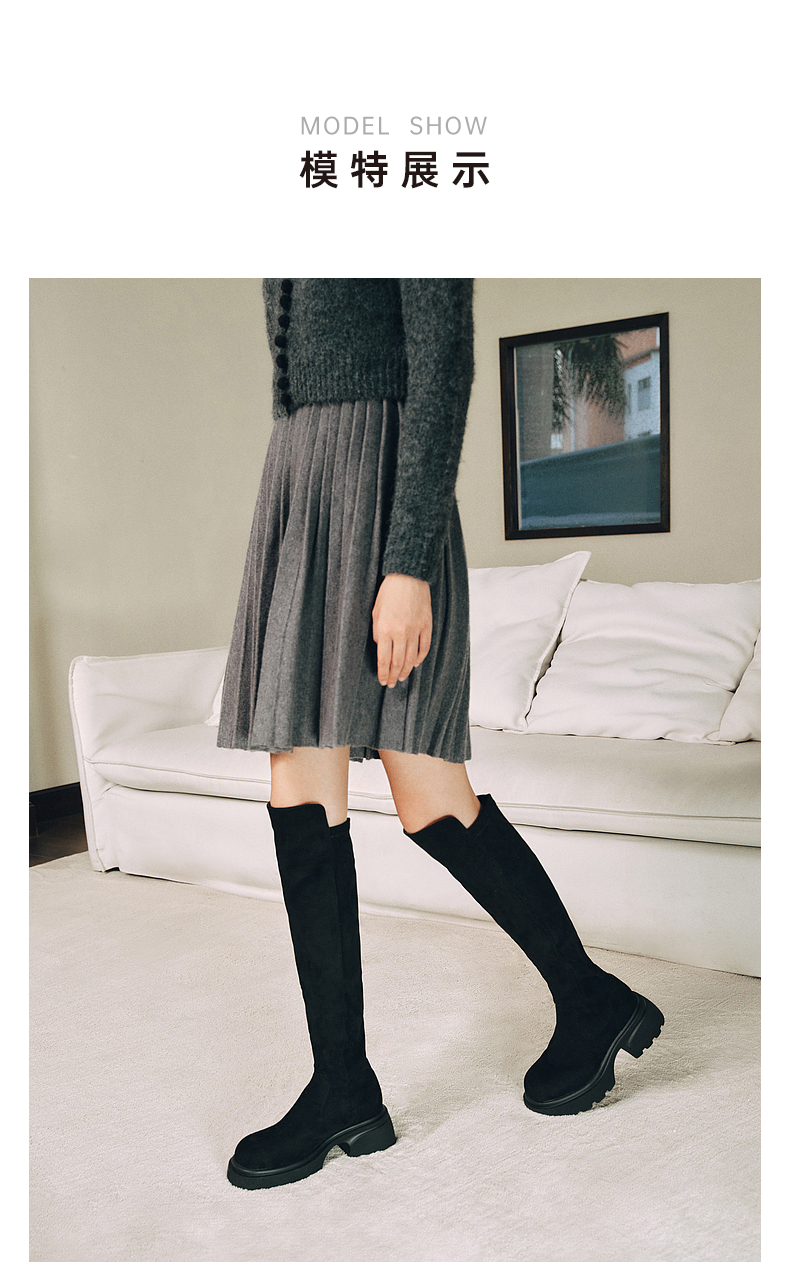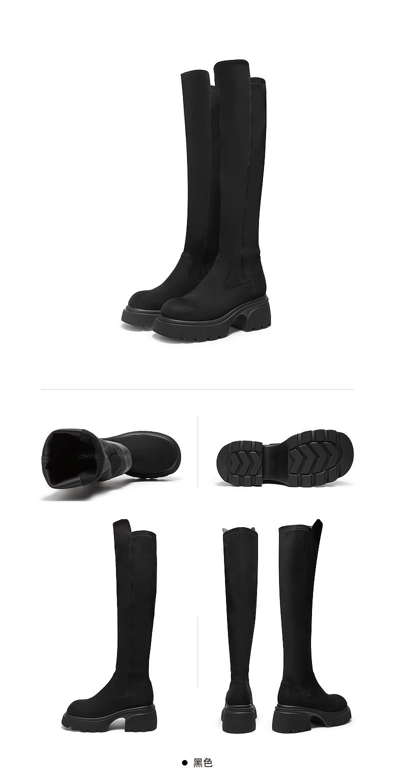 千百度过膝弹力靴袜靴女冬季厚底高筒长靴骑士靴A24523379