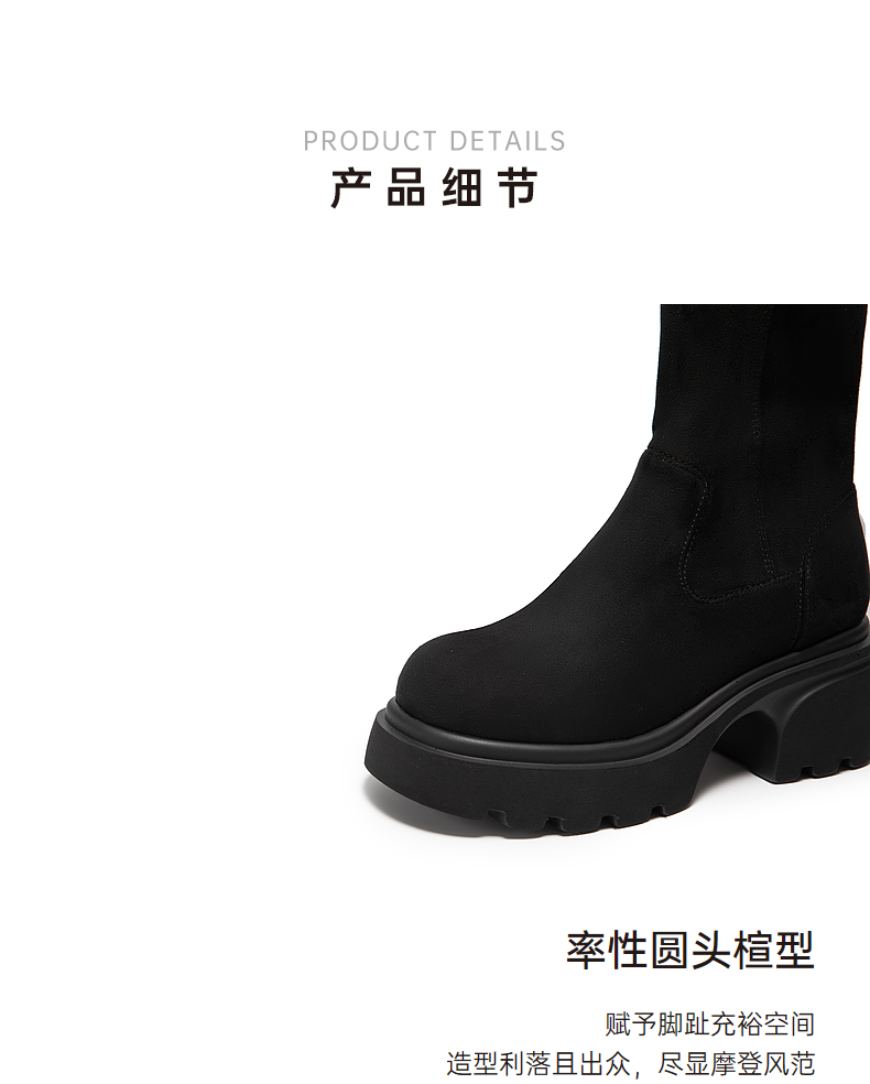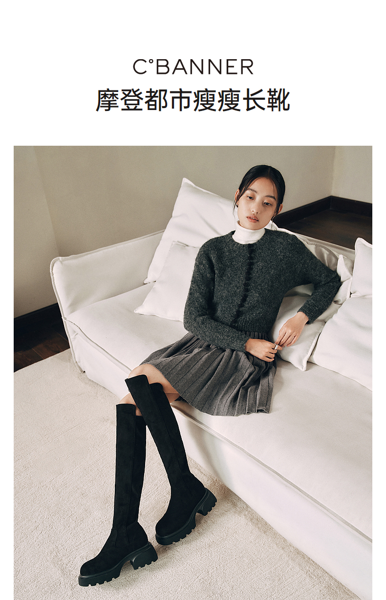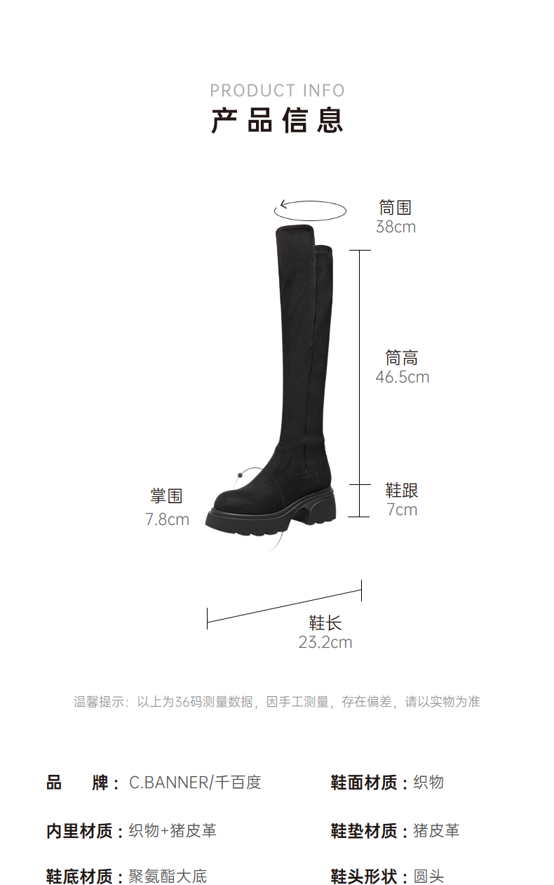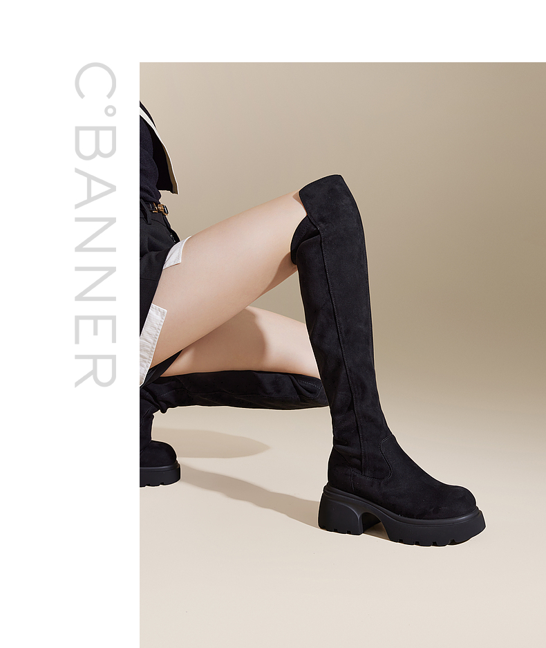 千百度过膝弹力靴袜靴女冬季厚底高筒长靴骑士靴A24523379