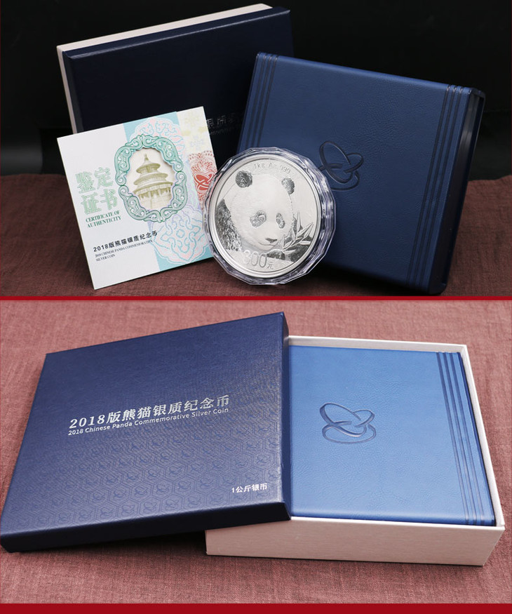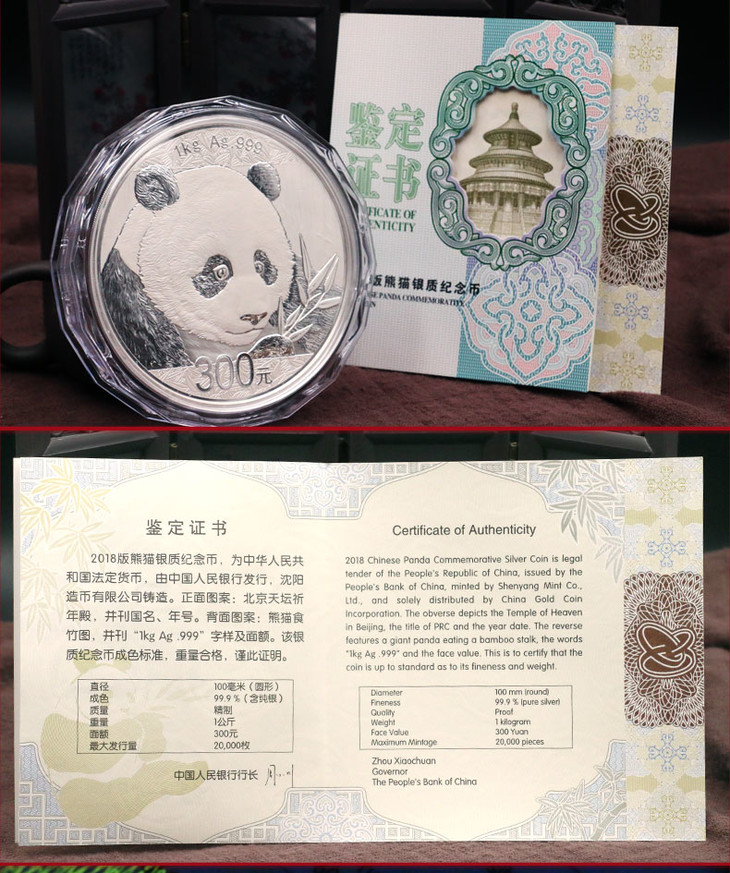 ⊙背面图案:熊猫食竹图,并刊面额、重量及成色。