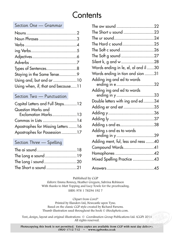 KS1 英语针对性问题书:语法、标点符号和拼写 - 2 年级 适合帮助 2 年级学生完善语法、标点符号和拼写!它充满了基本的问题和活动,全部都依照新的课程标准而定。整本书都有提示和例子来帮助孩子们入门,还有勾选框来帮助他们跟踪他们对每个主题的信心程度。完整的答案包含在后面,因此很容易检查他们的进展情况。