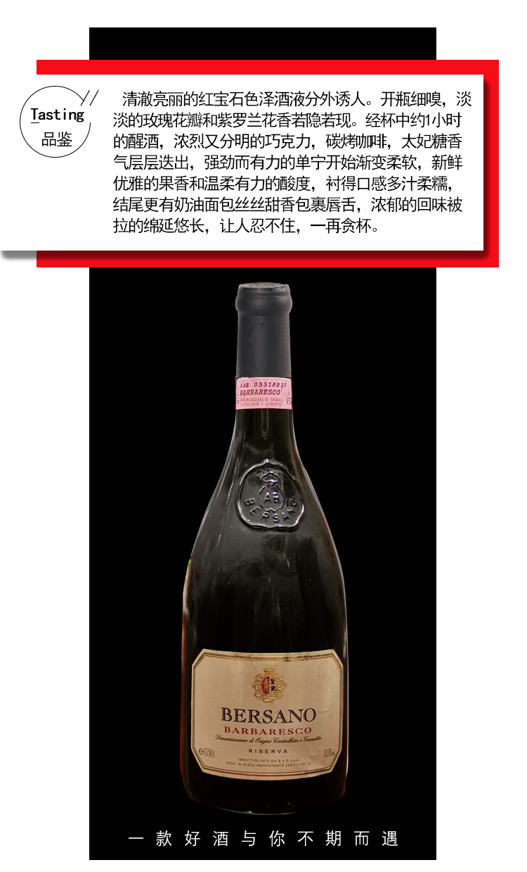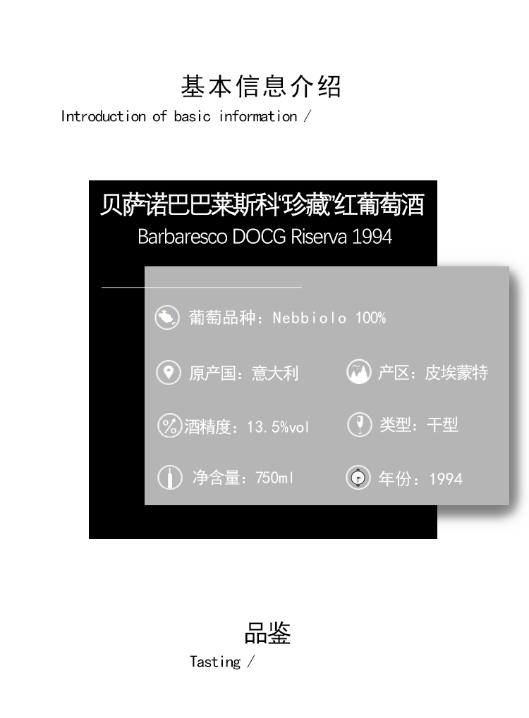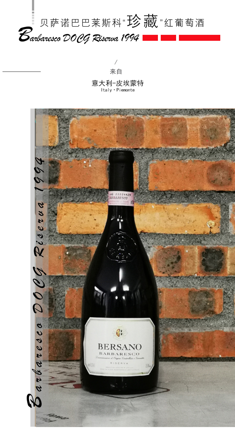 【1994年份老酒中的意大利酒后,珍藏级别】原生葡萄 巴巴莱斯科“珍藏”红葡萄酒