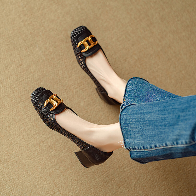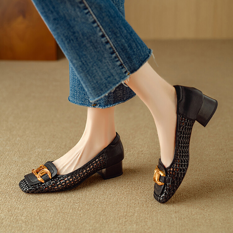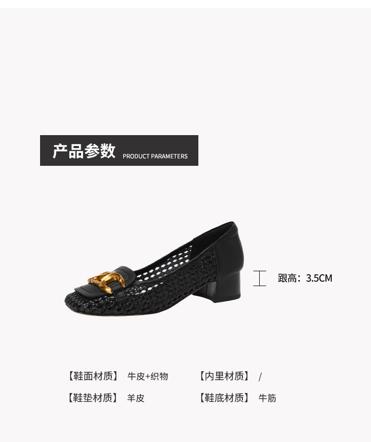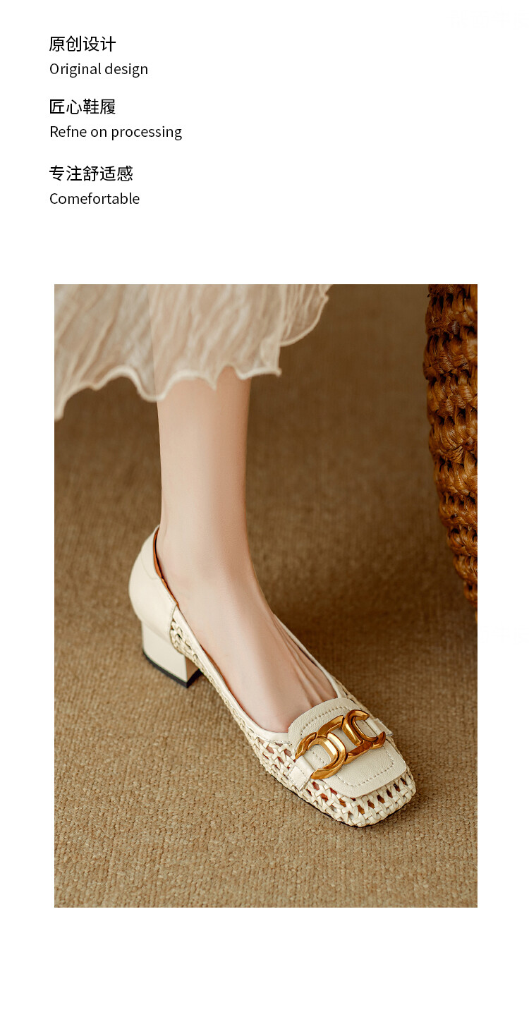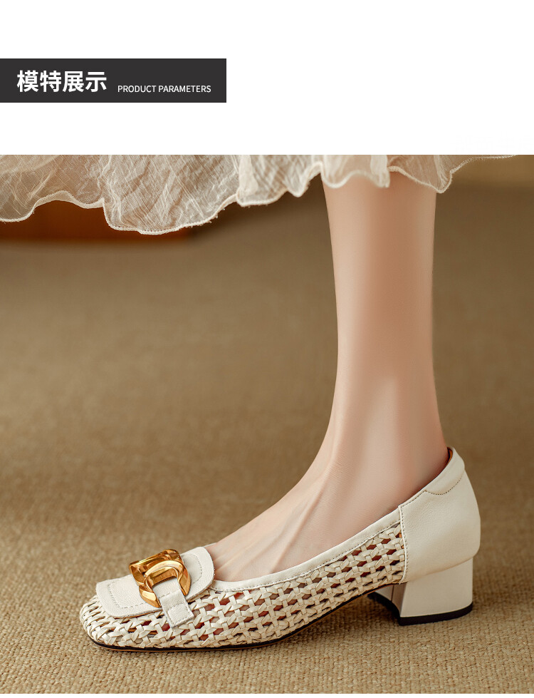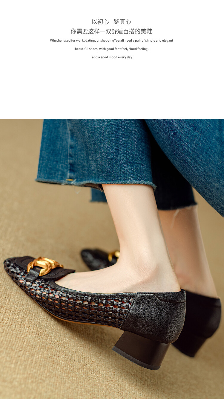 【预售7天】2024新款编织镂空粗跟方头浅口单鞋百搭时尚瓢鞋女NJMK&K1009