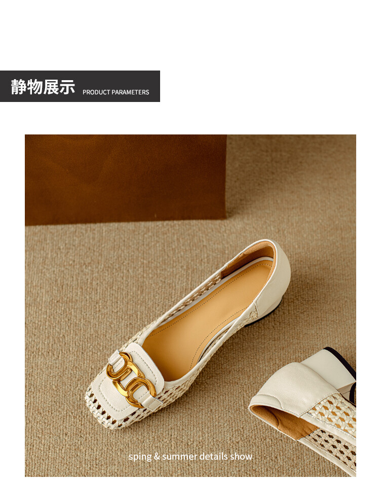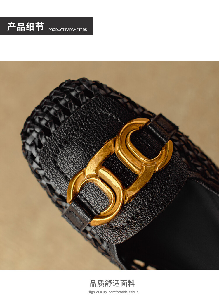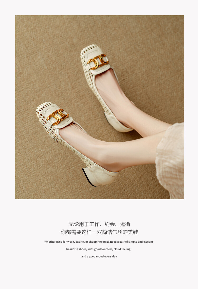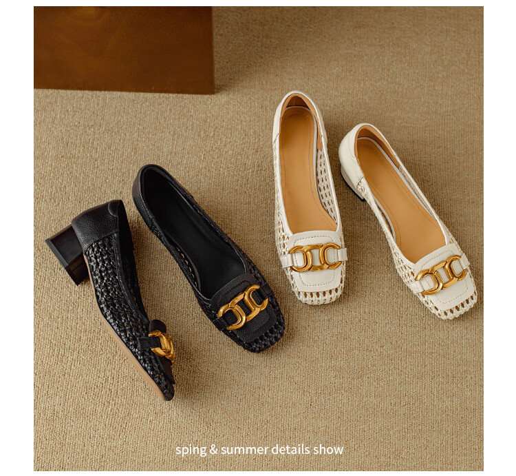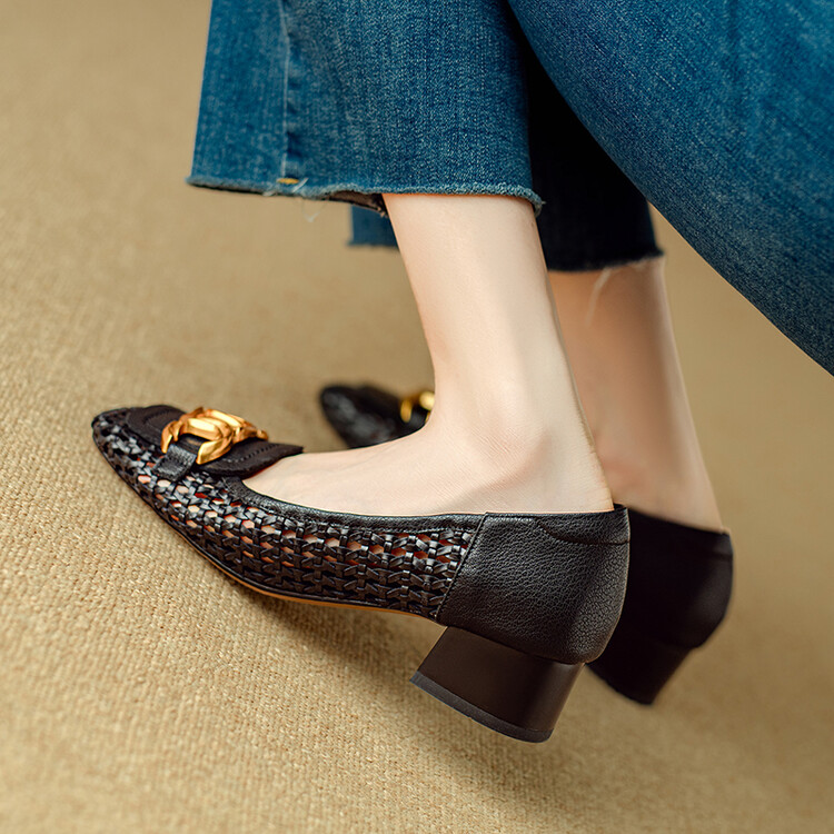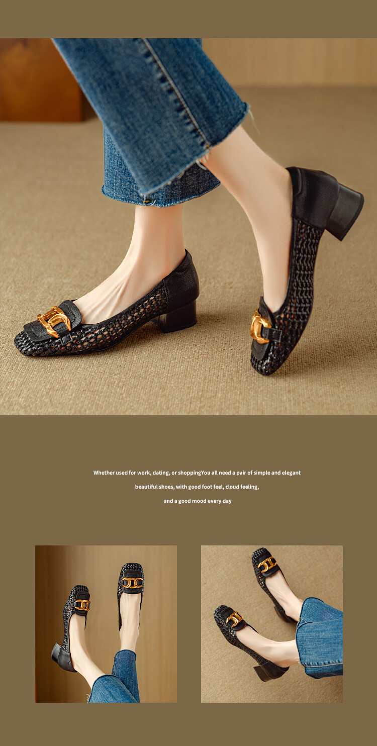 【预售7天】2024新款编织镂空粗跟方头浅口单鞋百搭时尚瓢鞋女NJMK&K1009