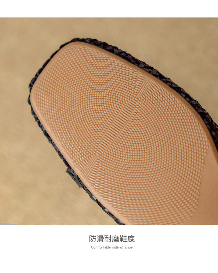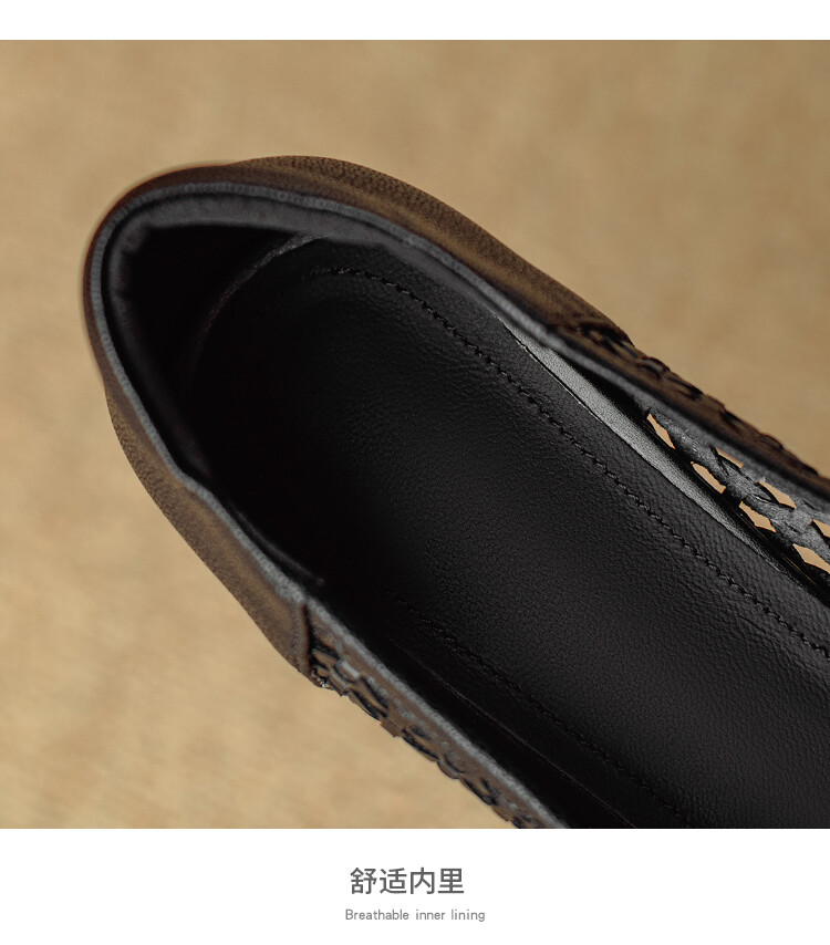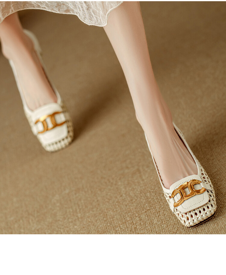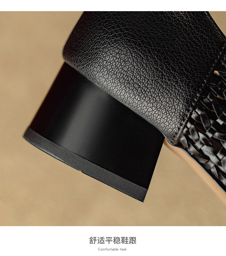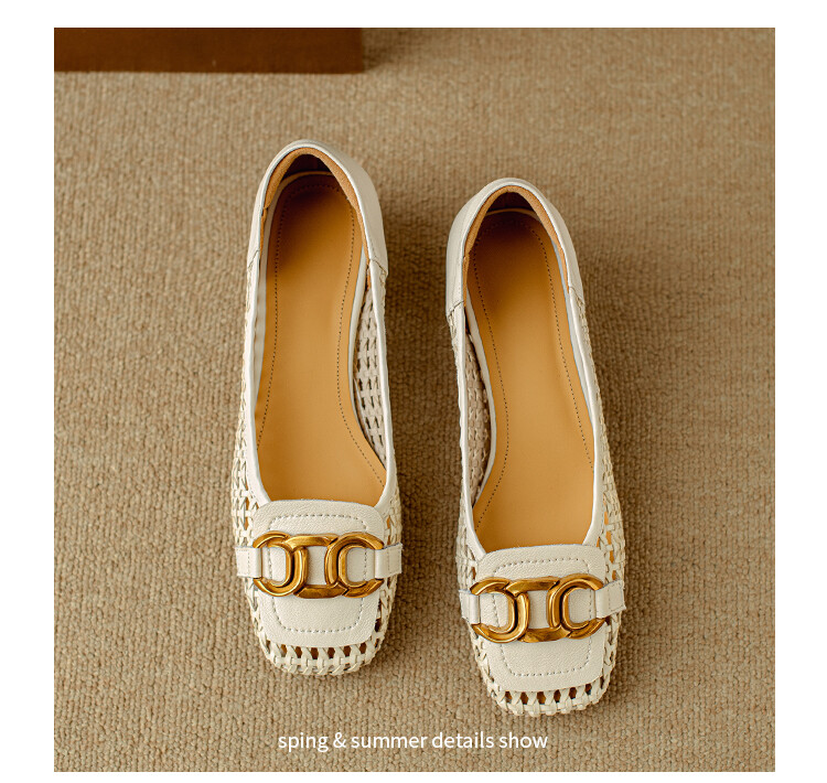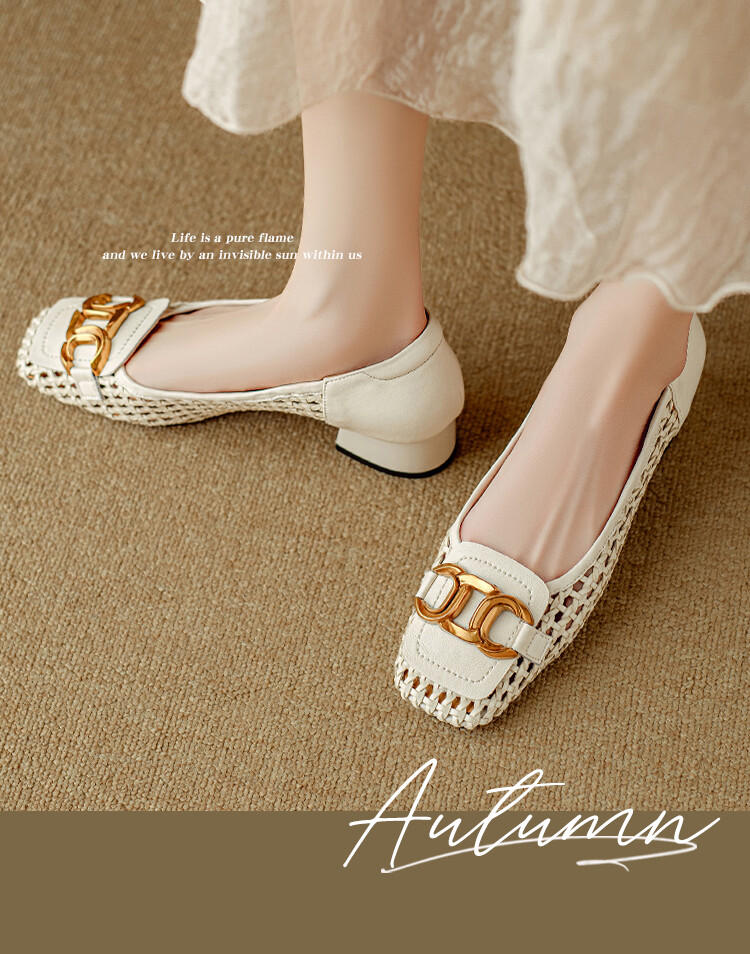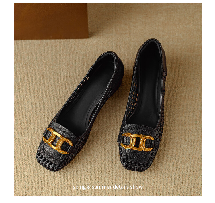 【预售7天】2024新款编织镂空粗跟方头浅口单鞋百搭时尚瓢鞋女NJMK&K1009