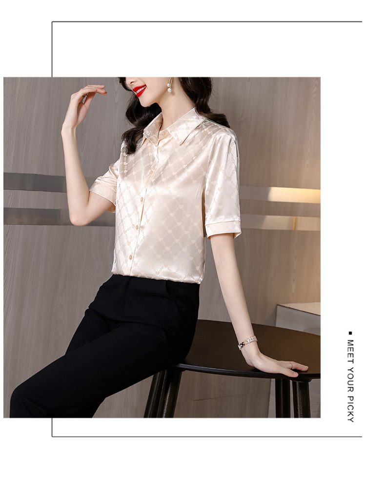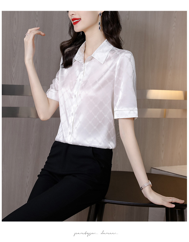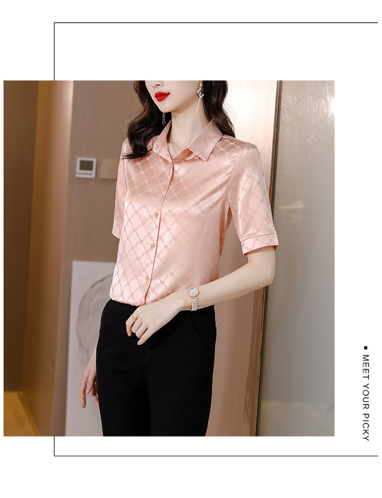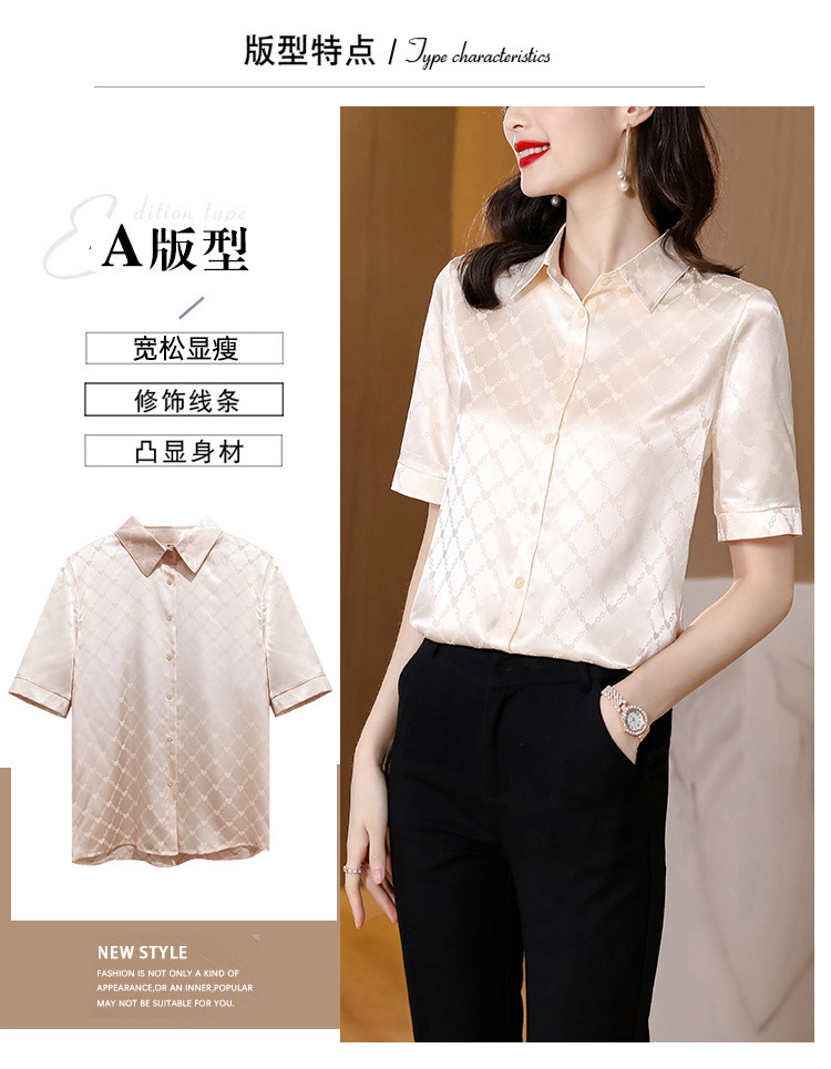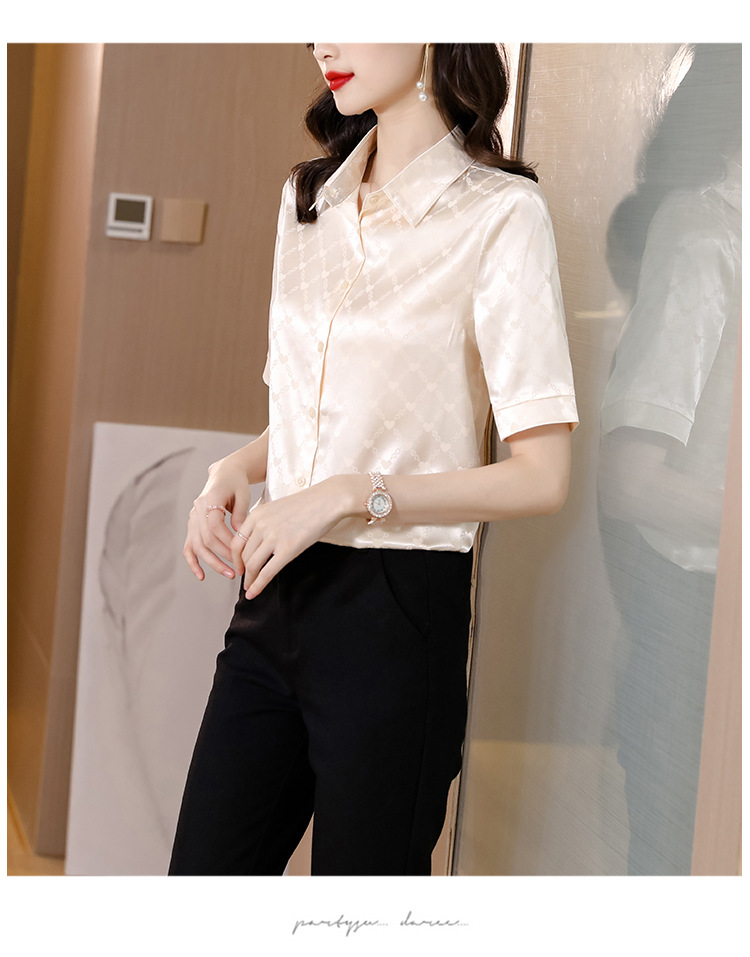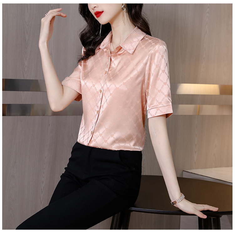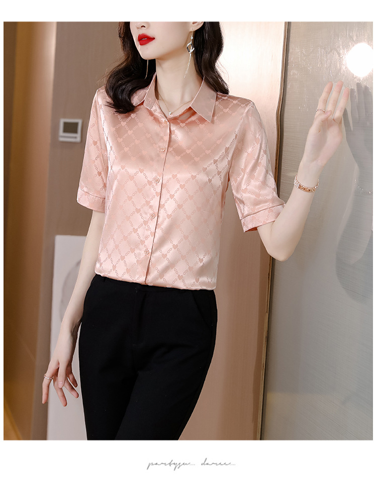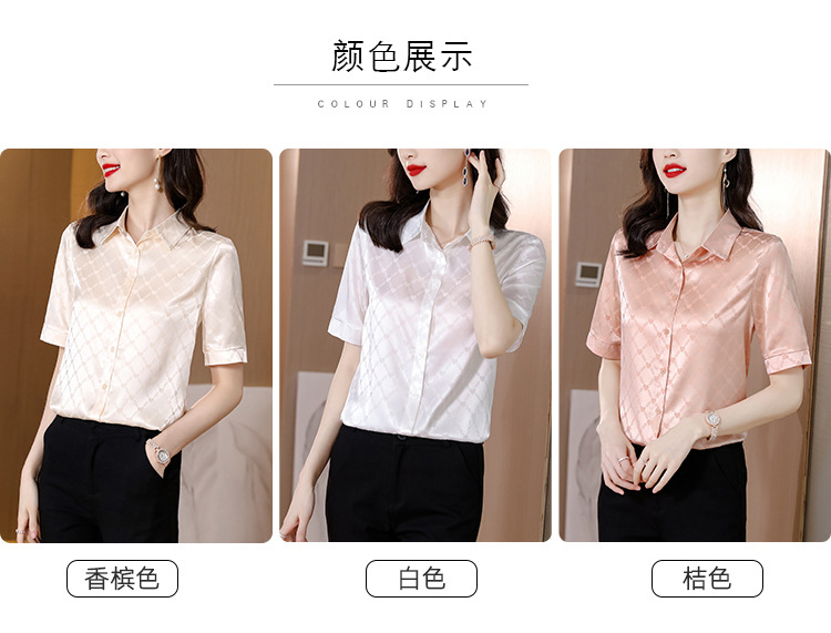 时尚百搭,短袖气质翻领衬衣仿真丝衬衫KQL-7016