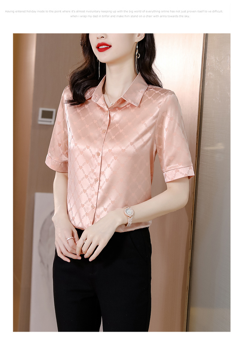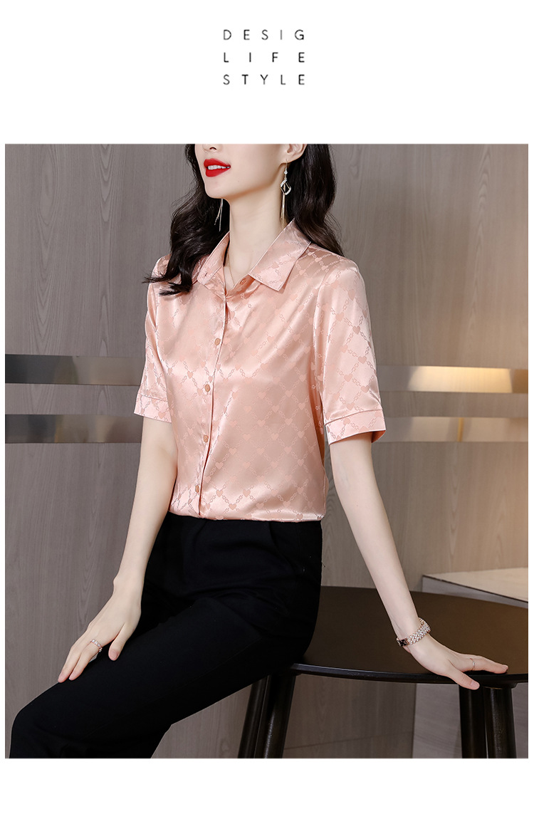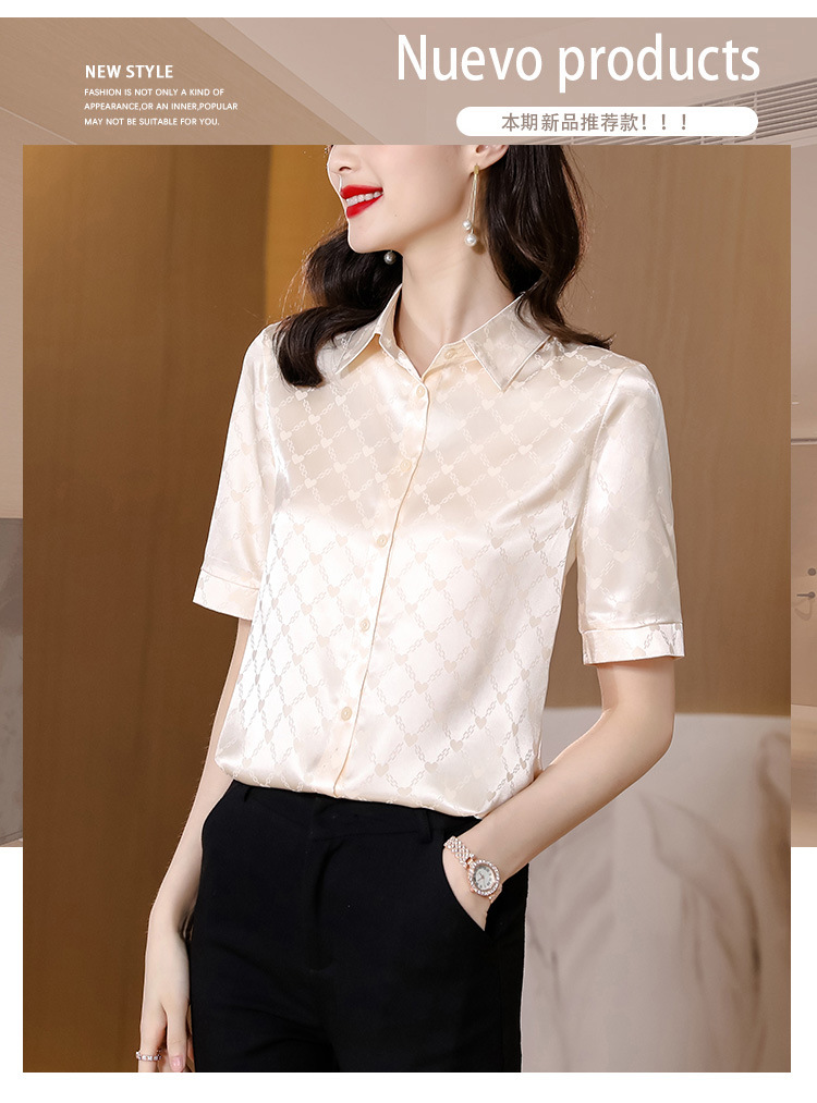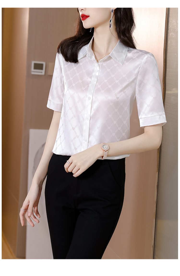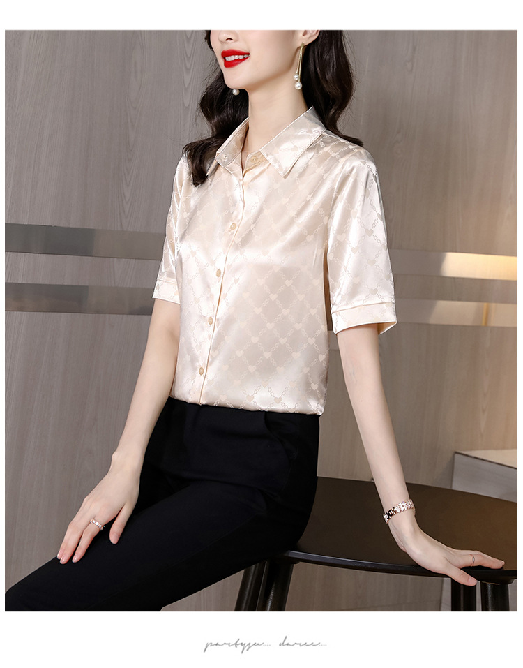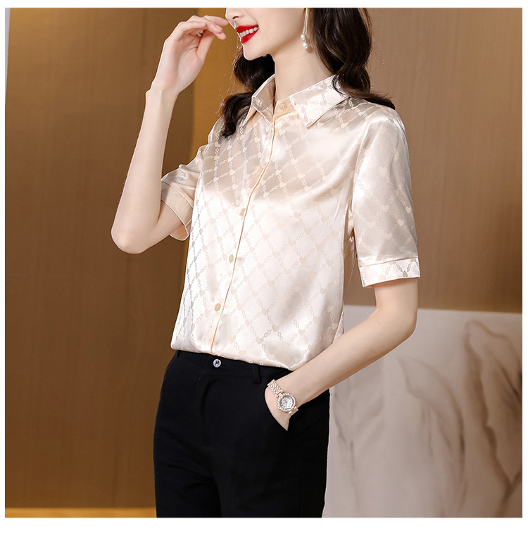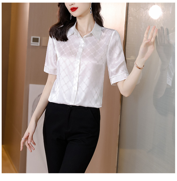 时尚百搭,短袖气质翻领衬衣仿真丝衬衫KQL-7016