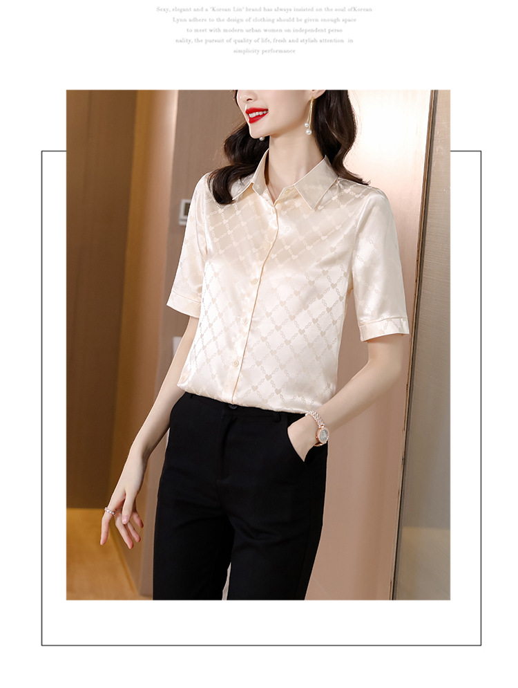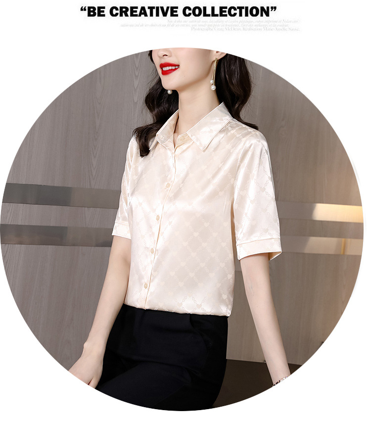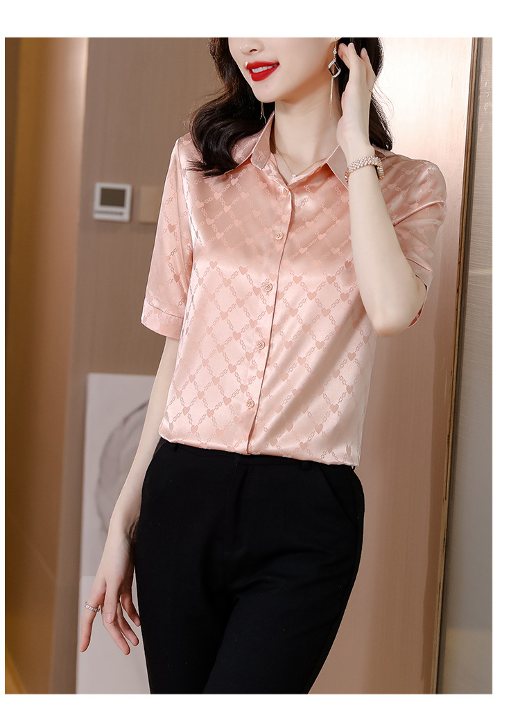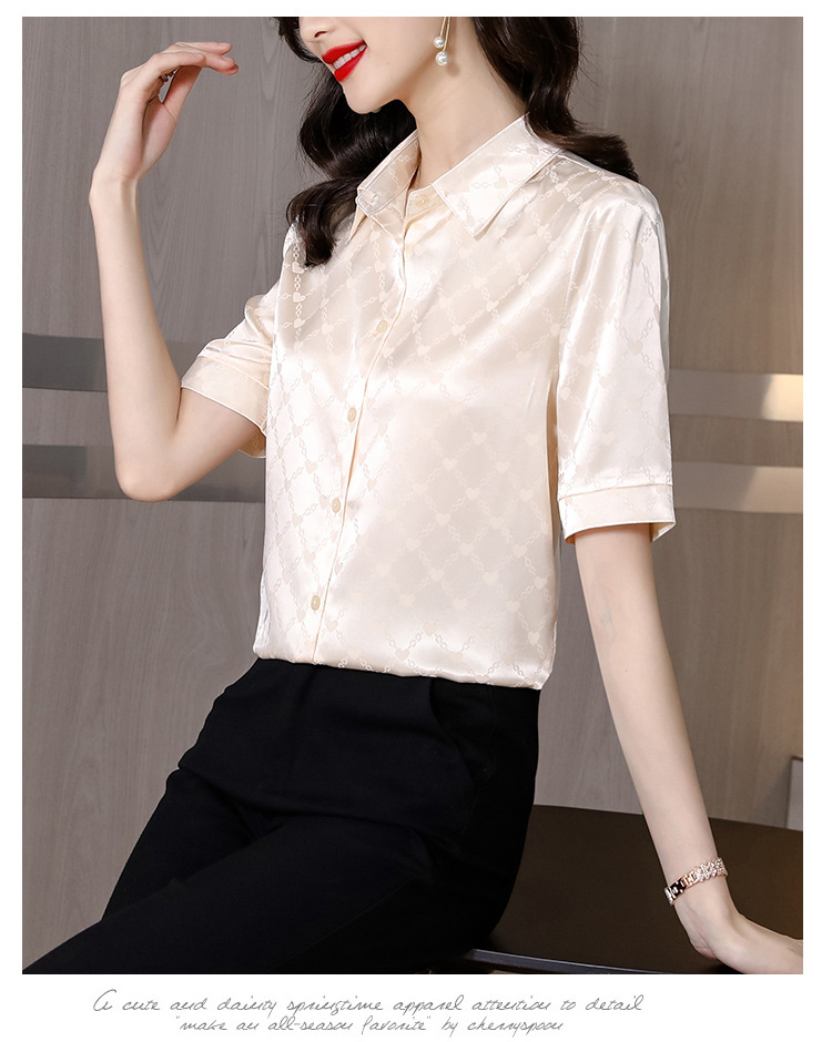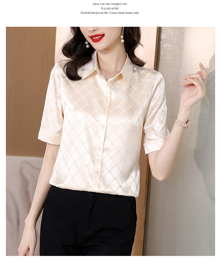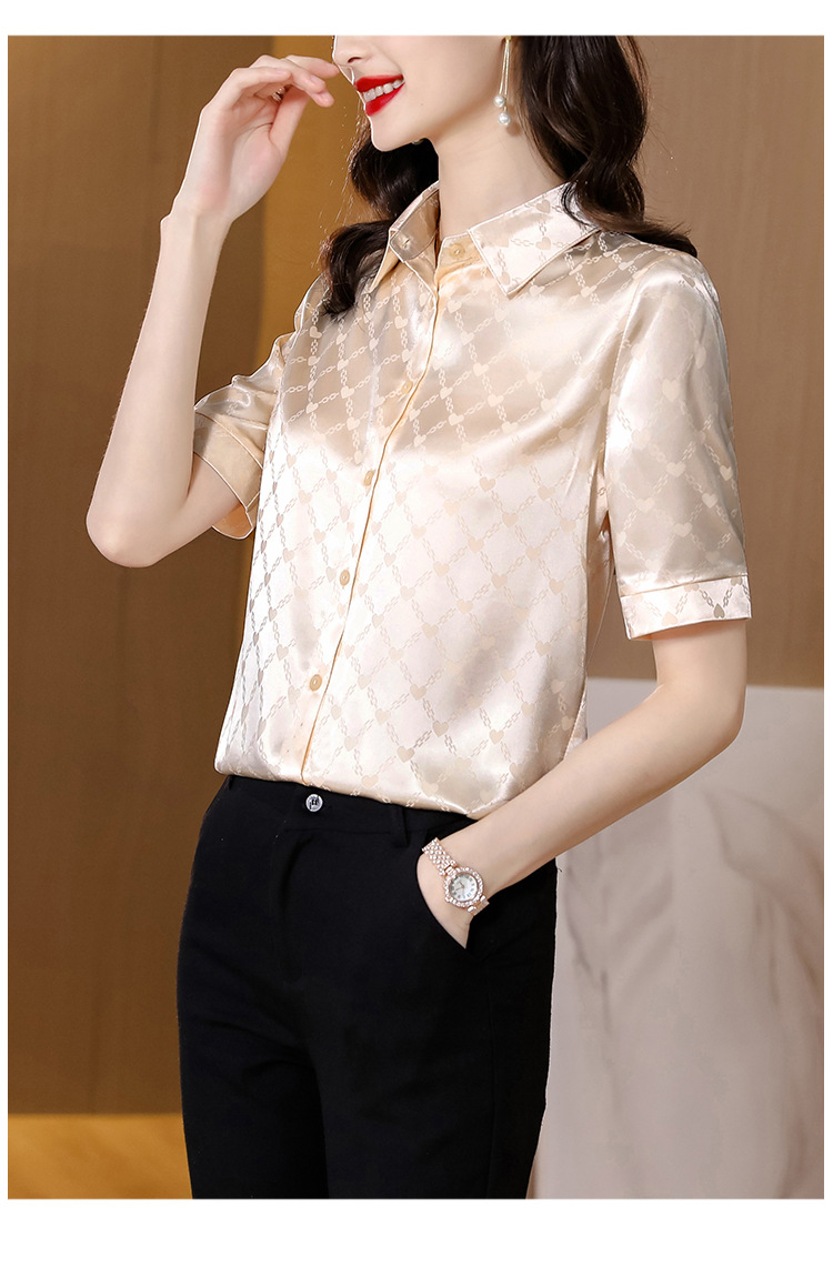 时尚百搭,短袖气质翻领衬衣仿真丝衬衫KQL-7016