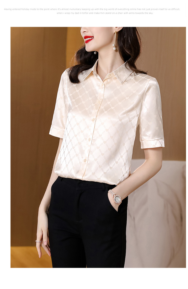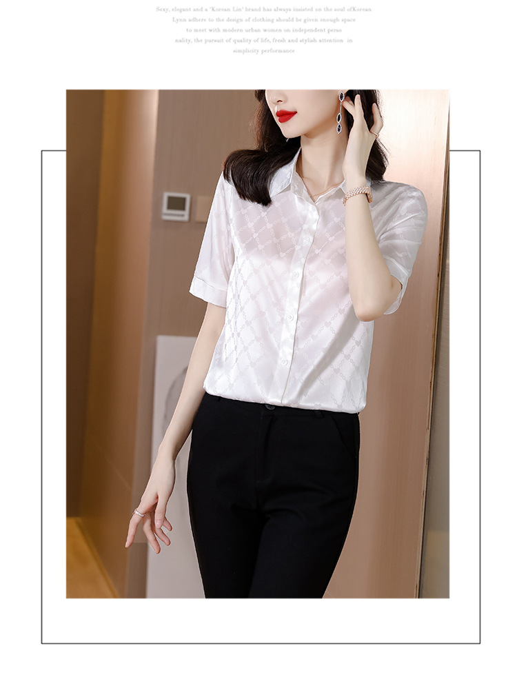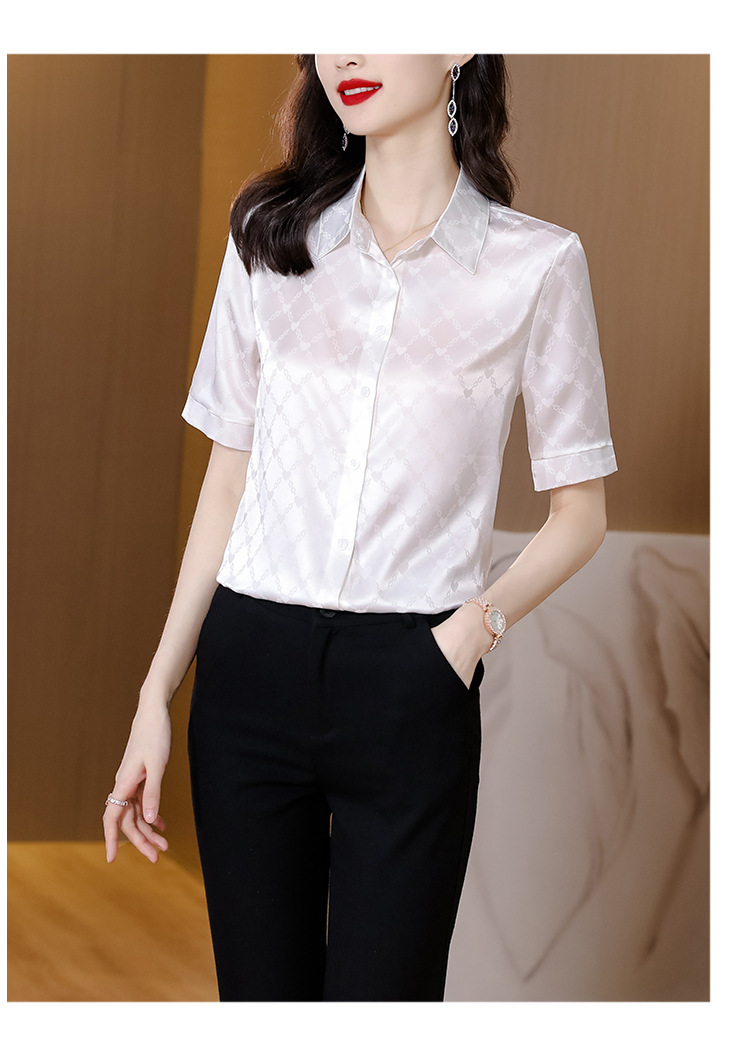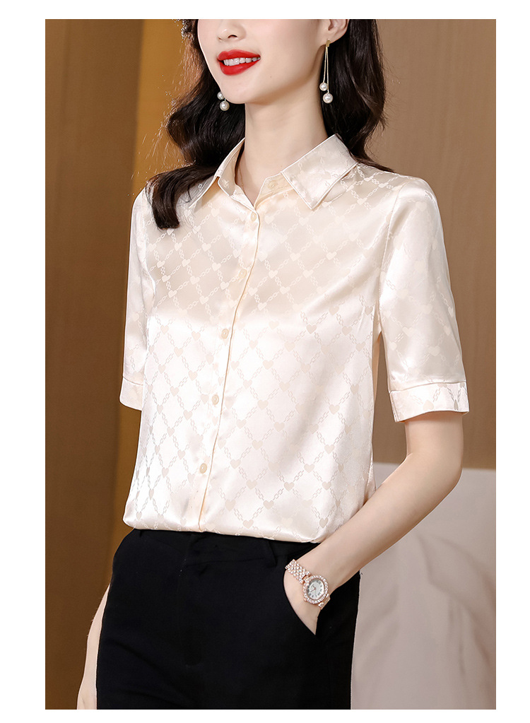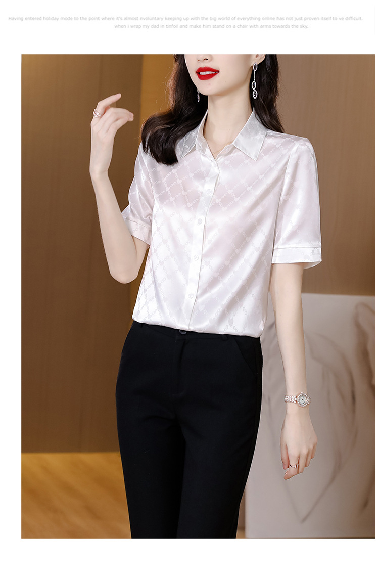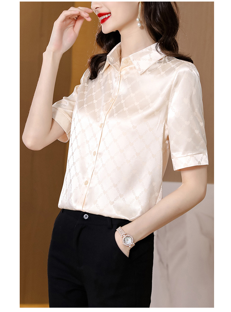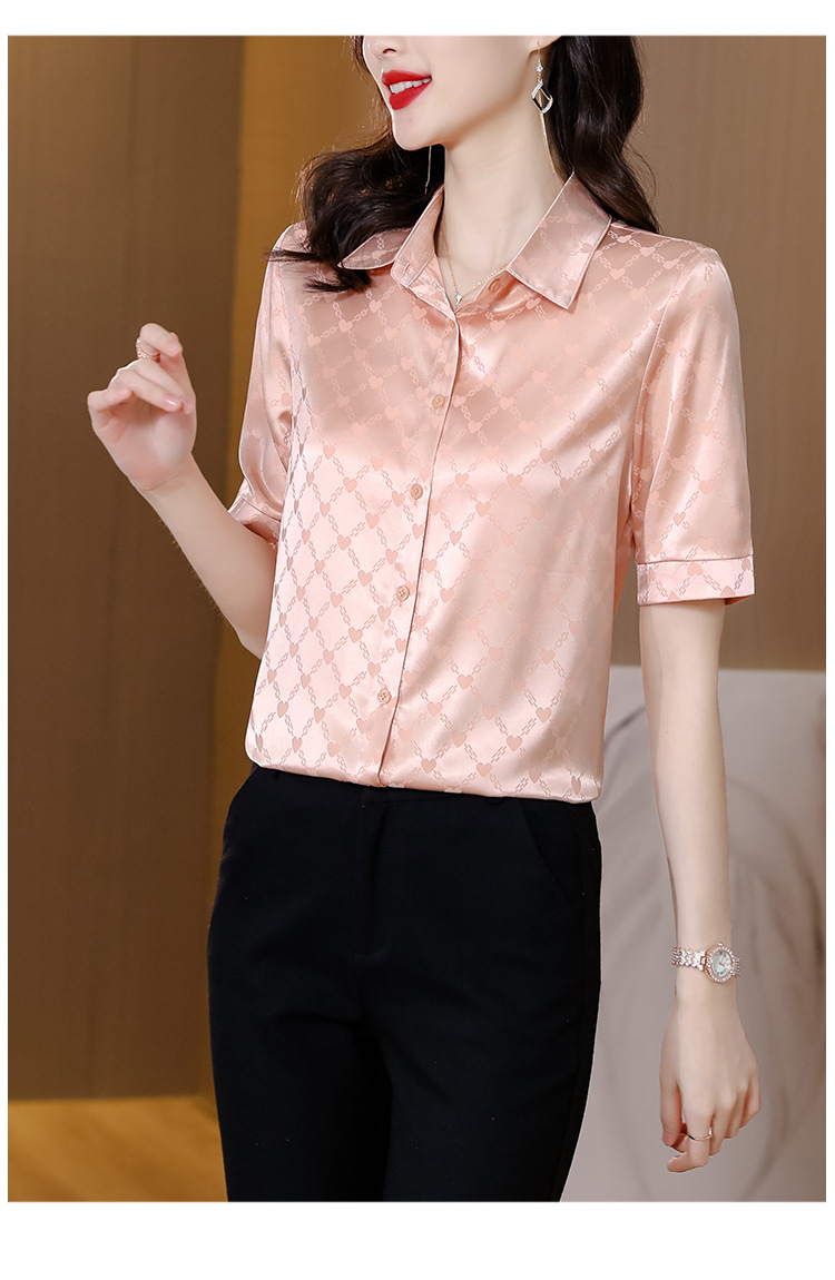 时尚百搭,短袖气质翻领衬衣仿真丝衬衫KQL-7016