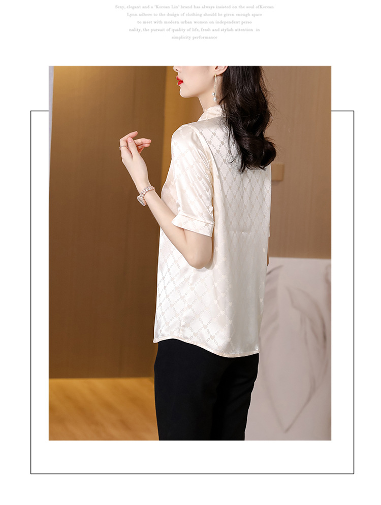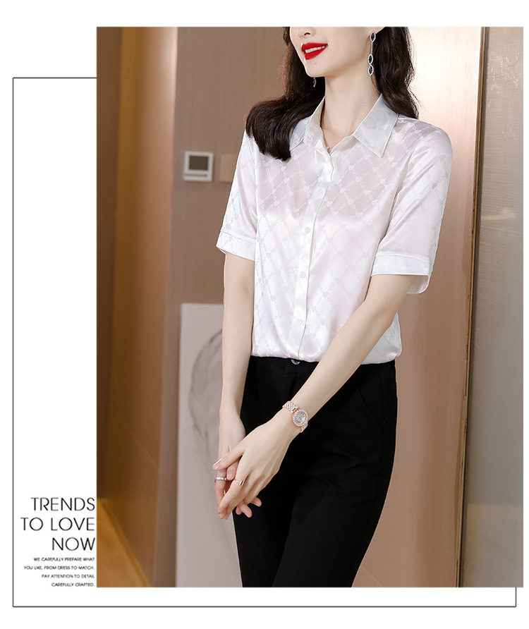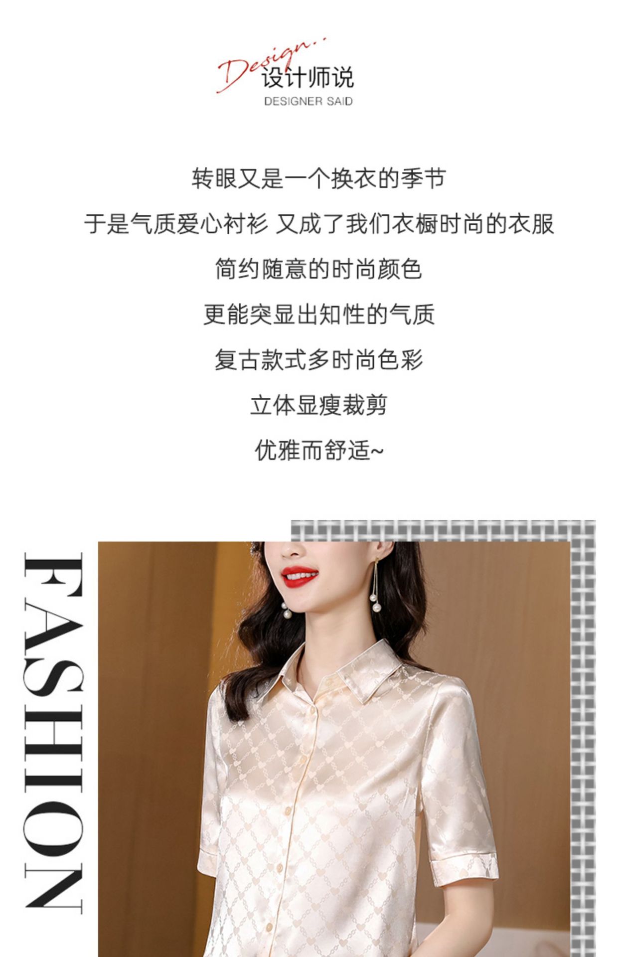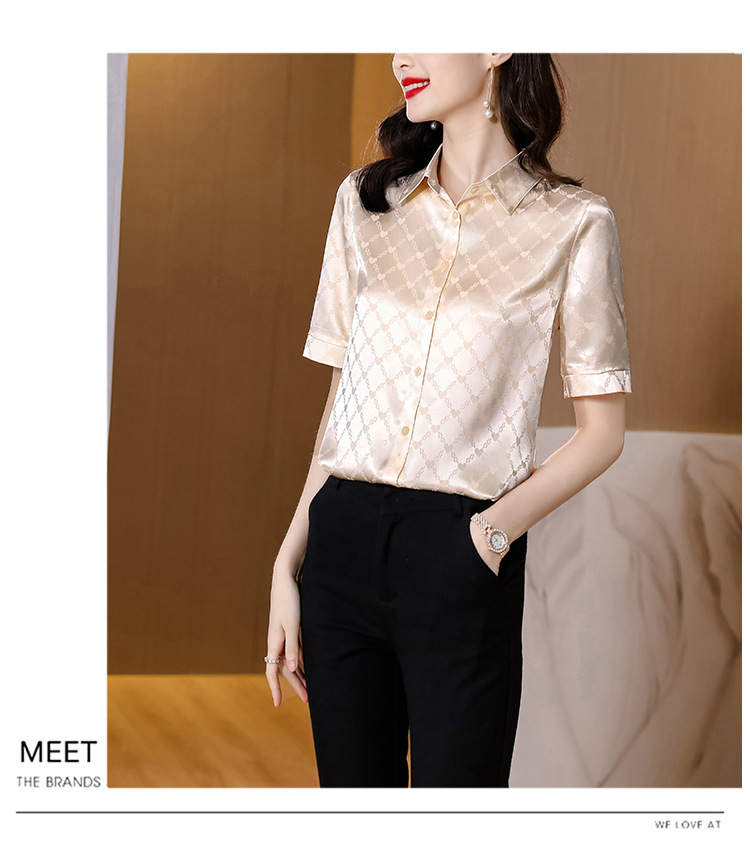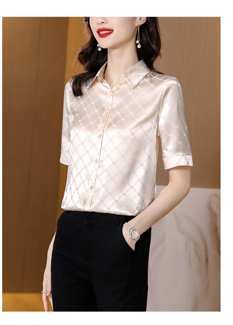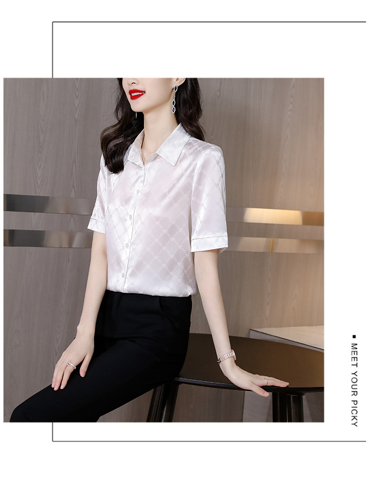 时尚百搭,短袖气质翻领衬衣仿真丝衬衫KQL-7016