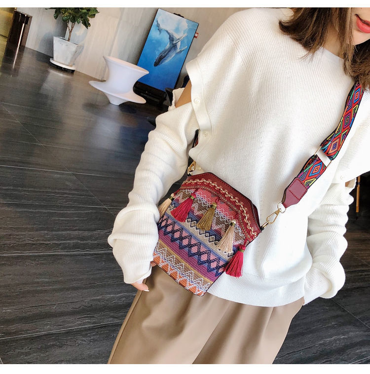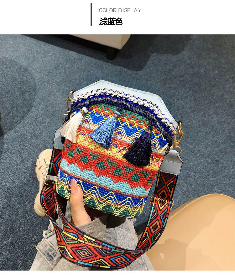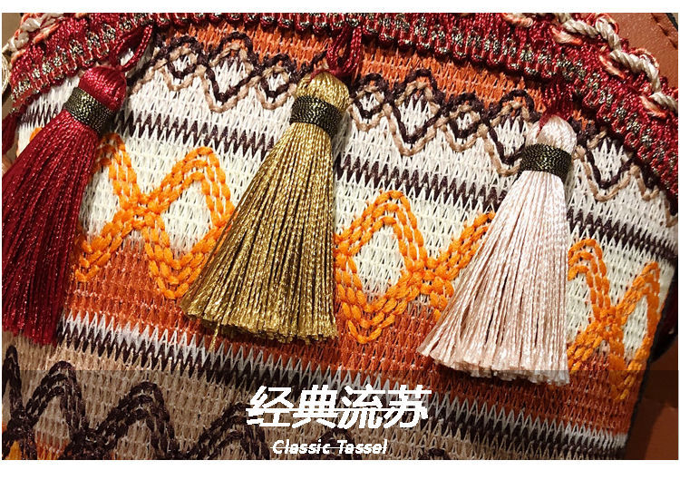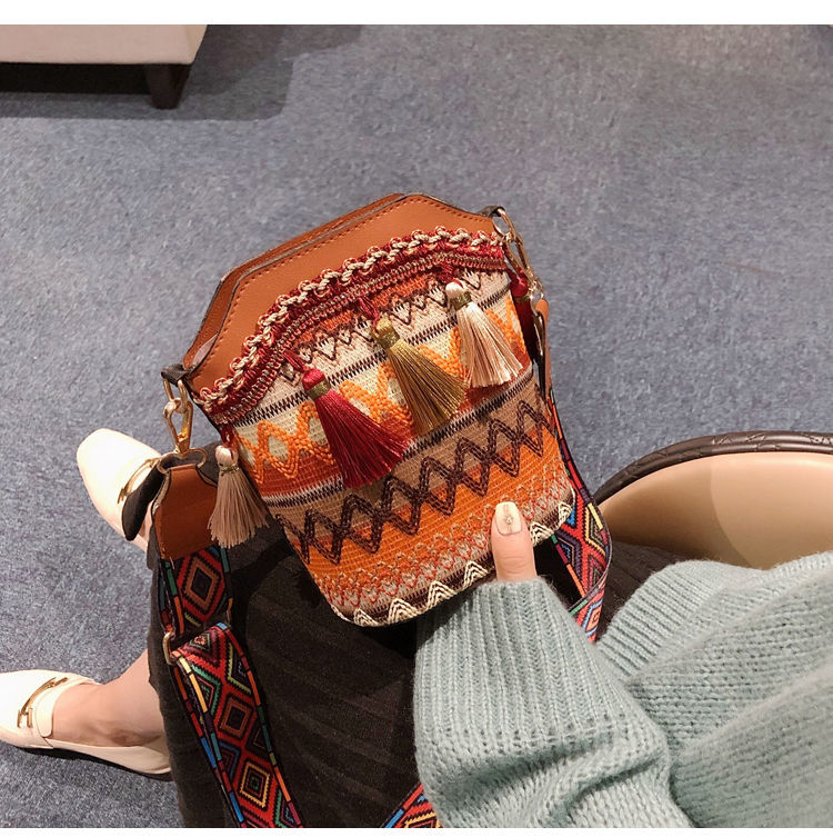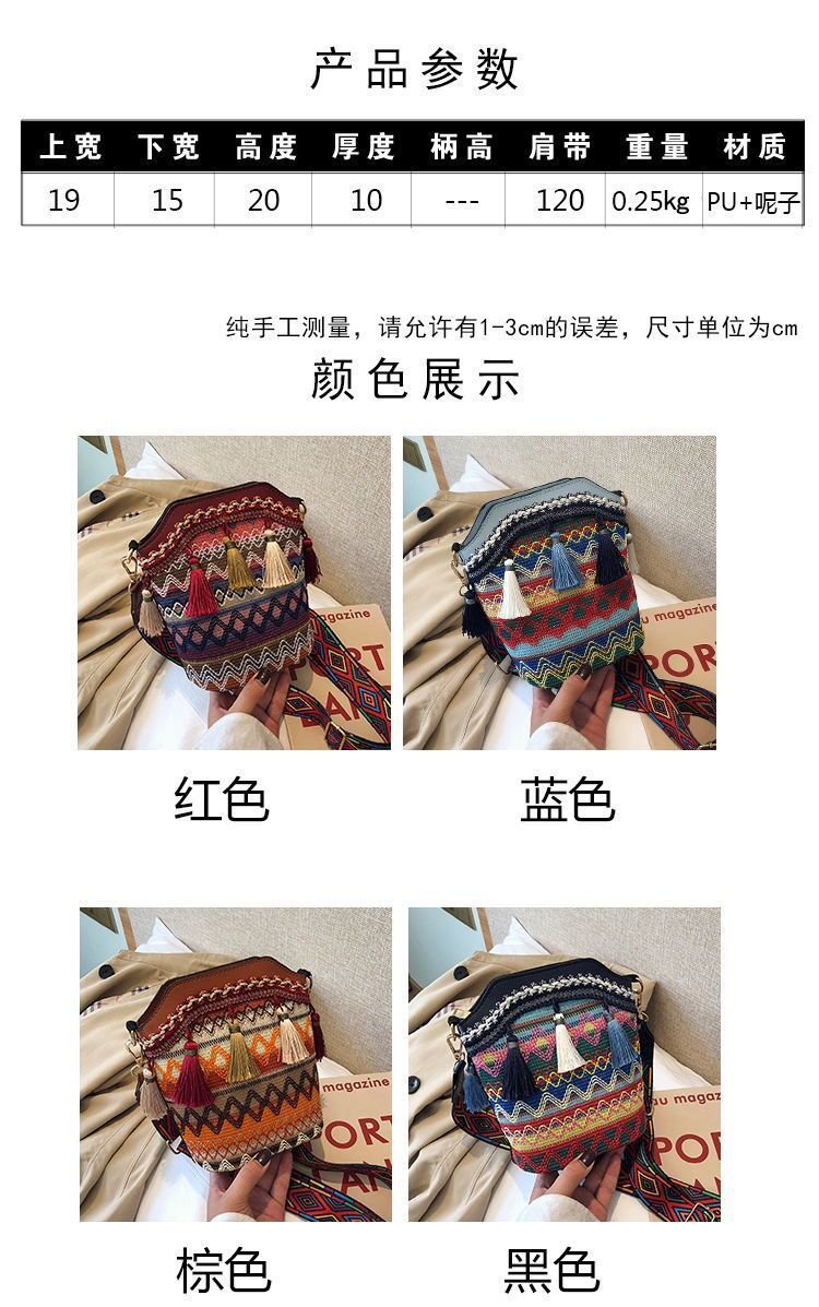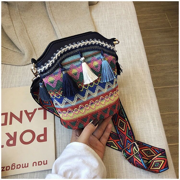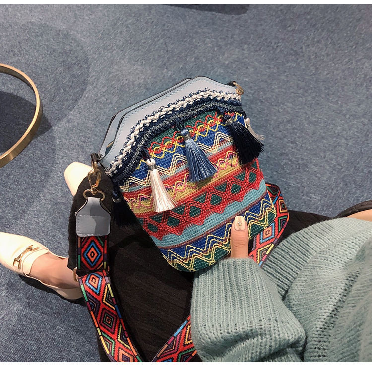 新款民族风优雅气质百搭,单肩流苏斜挎水桶包