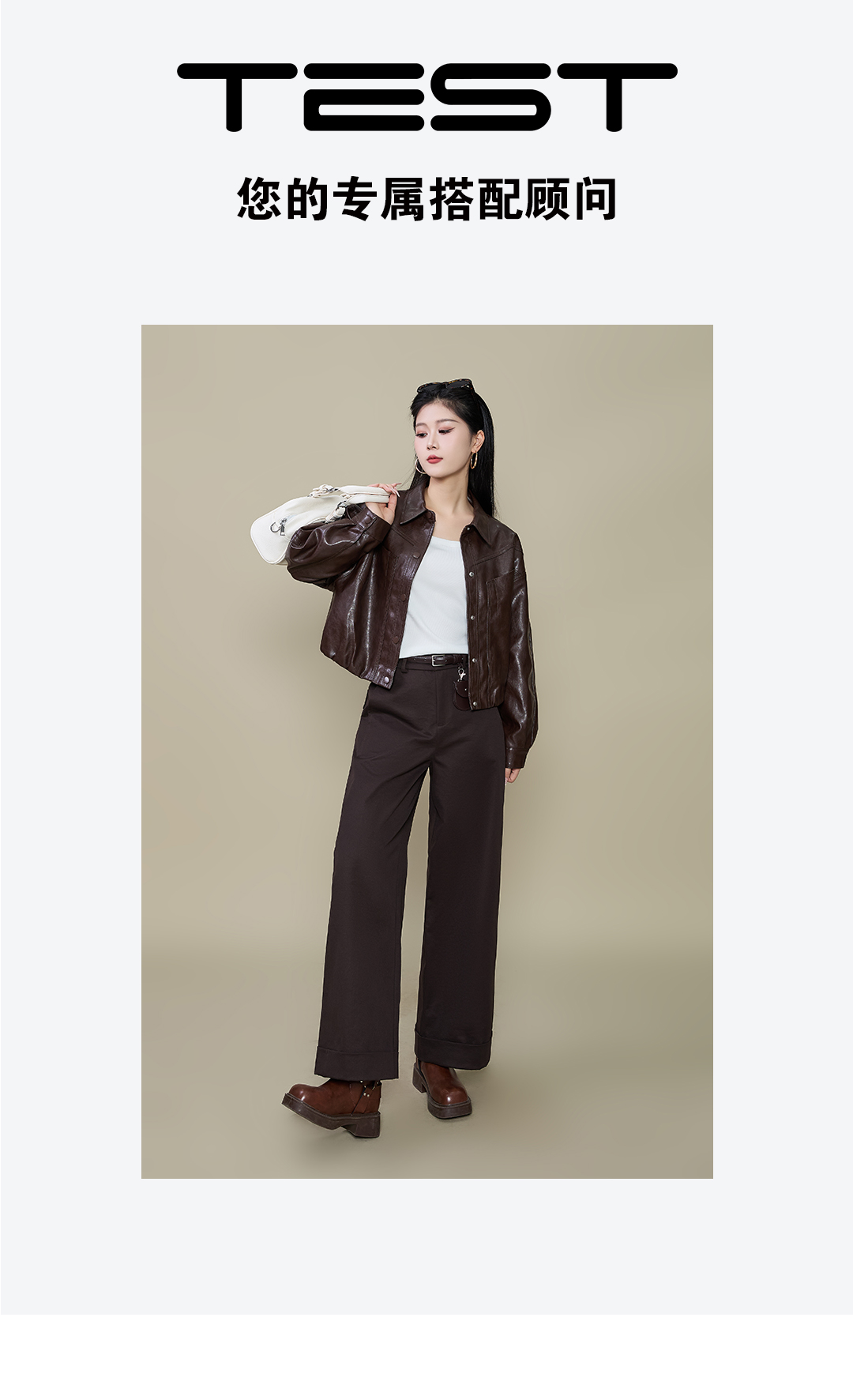 秋上新简约风棕色修身韩版时尚皮衣夹克2253013 商品图5