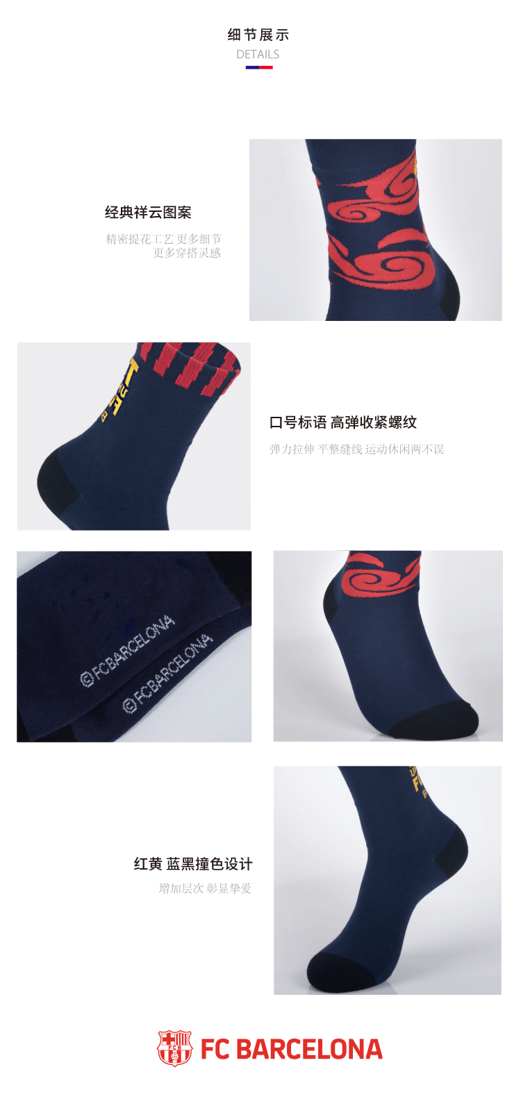 巴塞罗那俱乐部官方商品|巴萨深蓝针织提花中筒袜男女同款足球迷