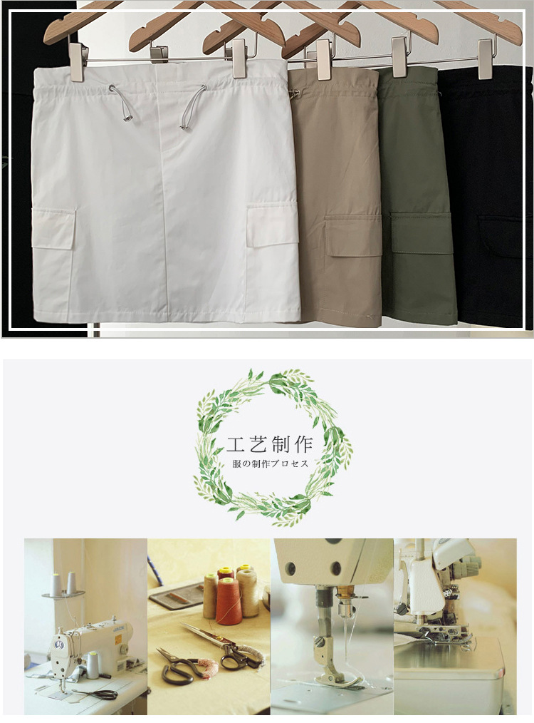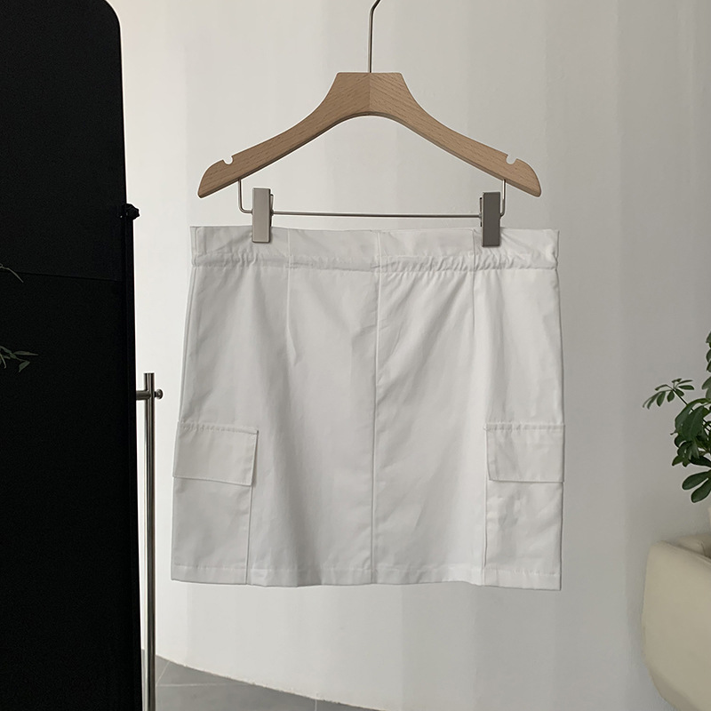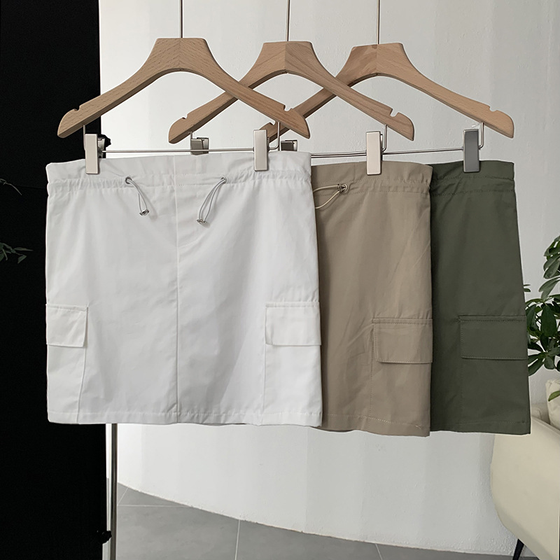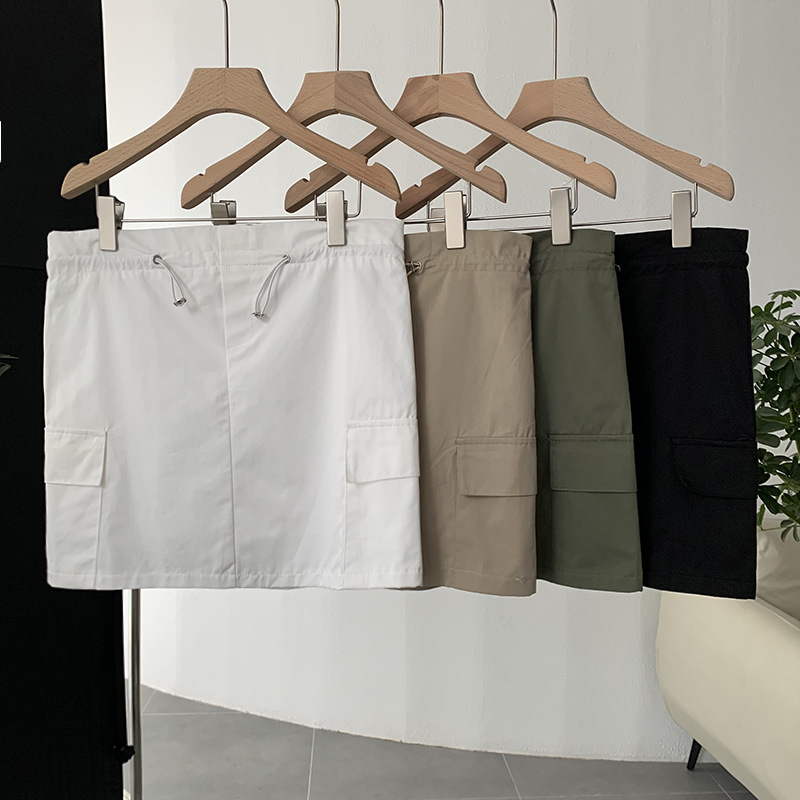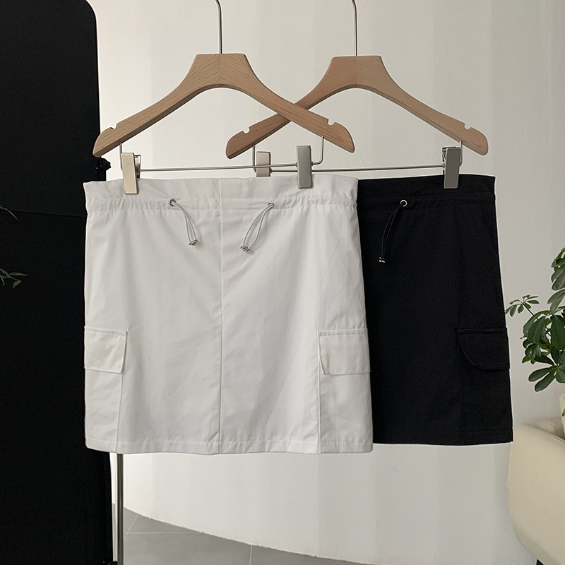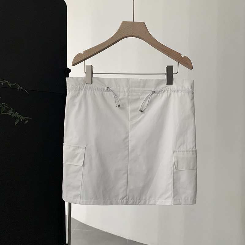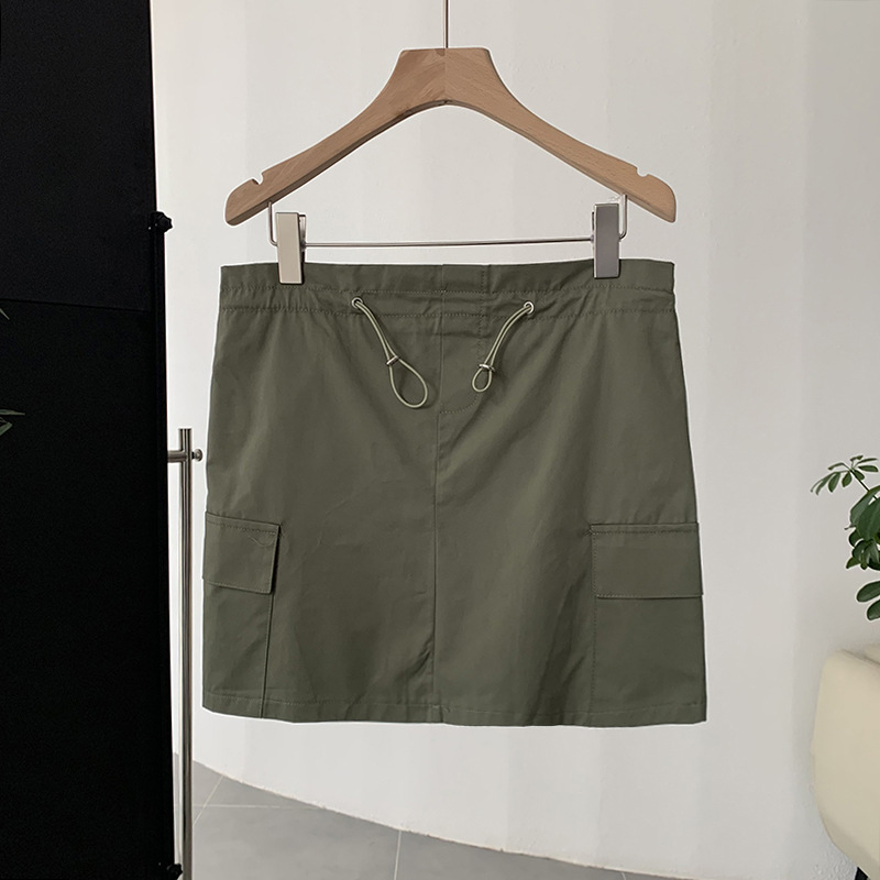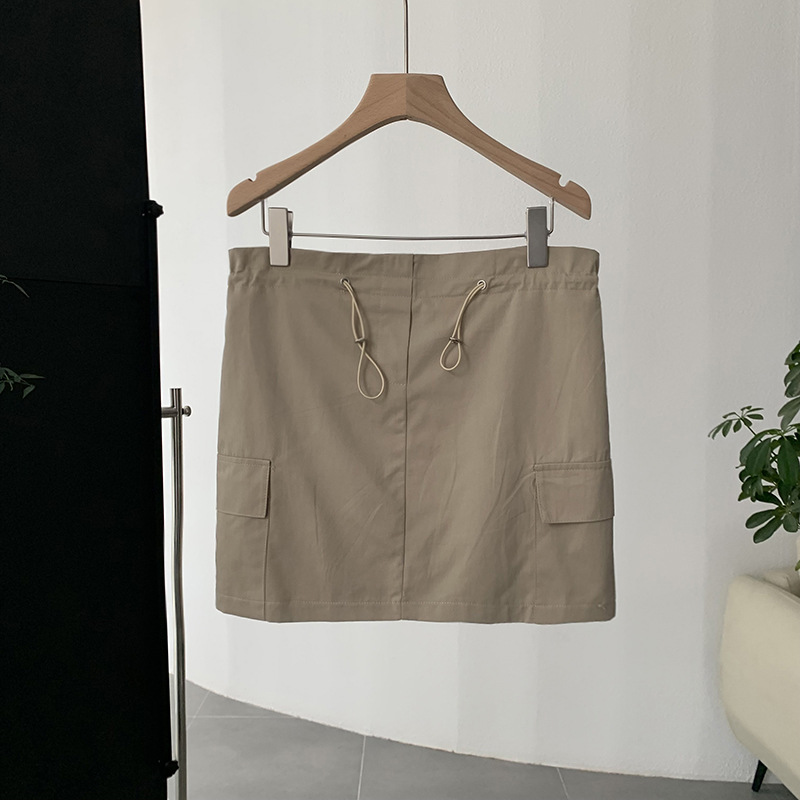 【2025夏季 双侧口袋设计半身裙】休闲百搭工装风 抽绳高腰A字裙女纯色