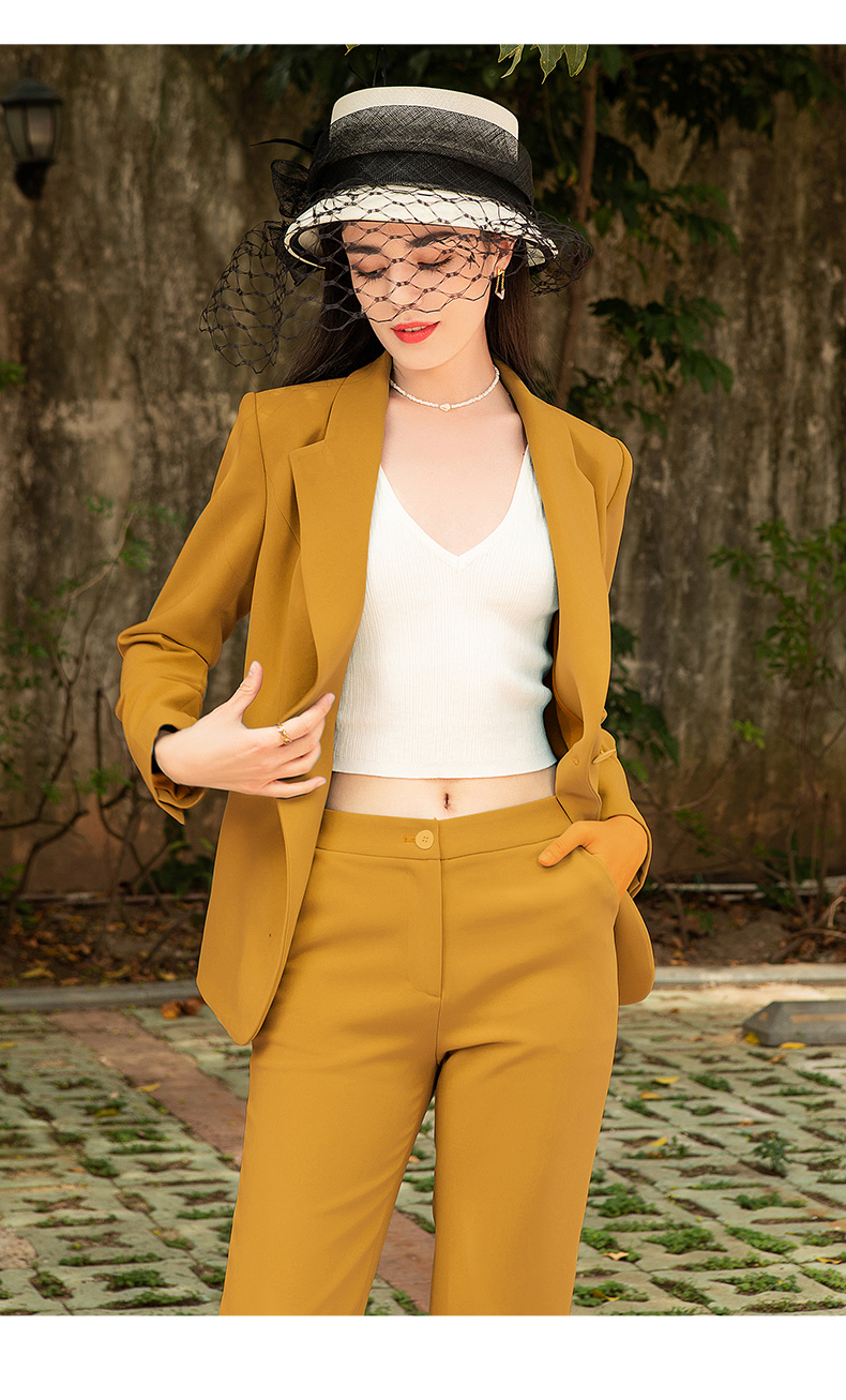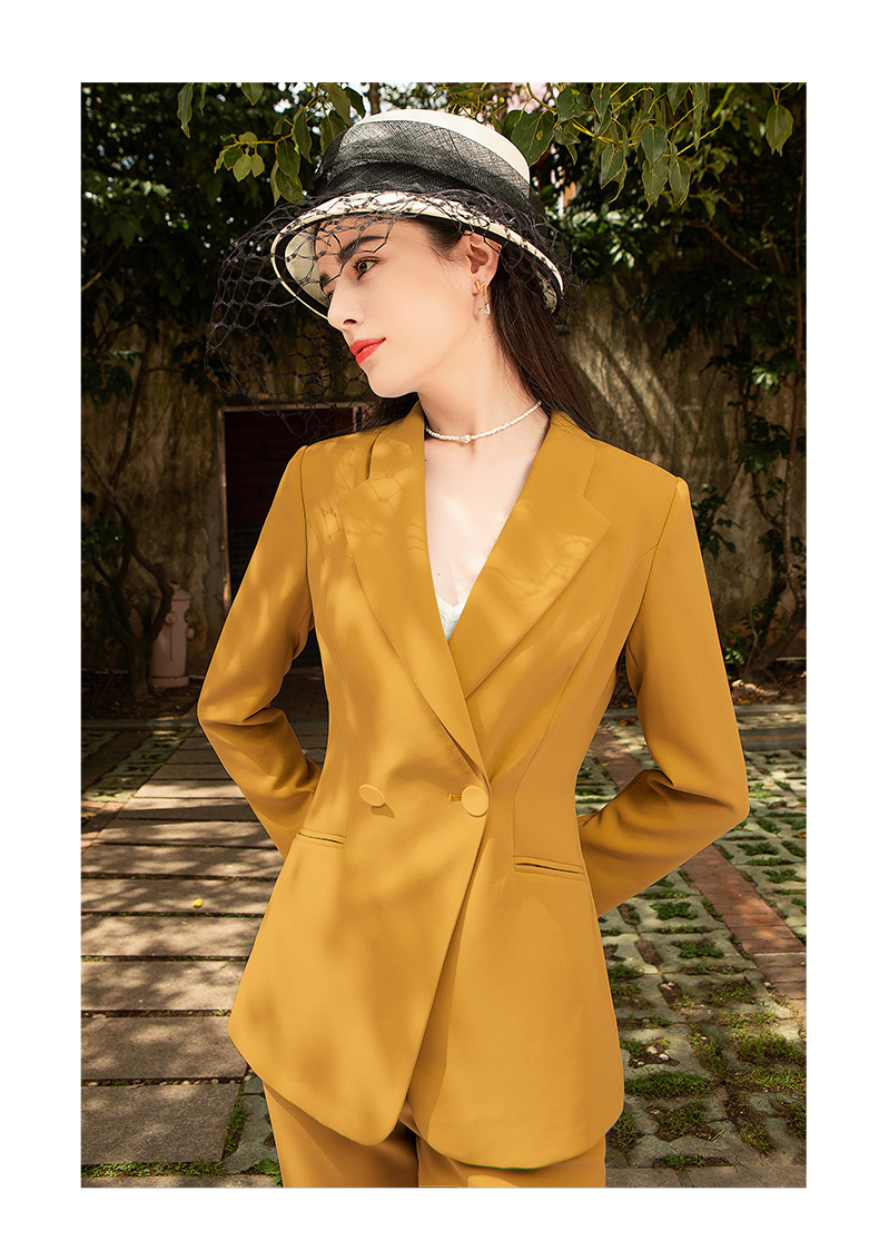 IWY/IWY气质黄色职业装女时尚修身显瘦总裁套装经理面试美容院工作服 CP1310