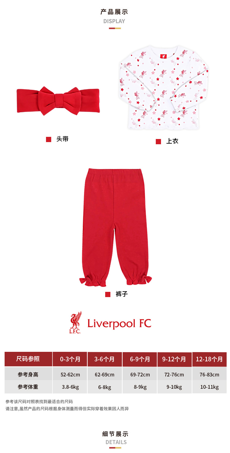【官网同款】利物浦俱乐部 | 婴儿分体服套装卫衣长裤发带组合