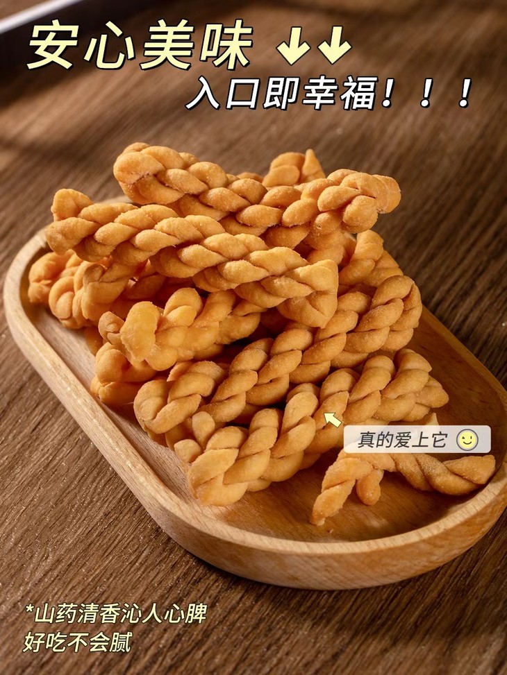 搭配玉米淀粉,制作好的麻花,融合了小麦粉的清香+铁棍山药的营养。