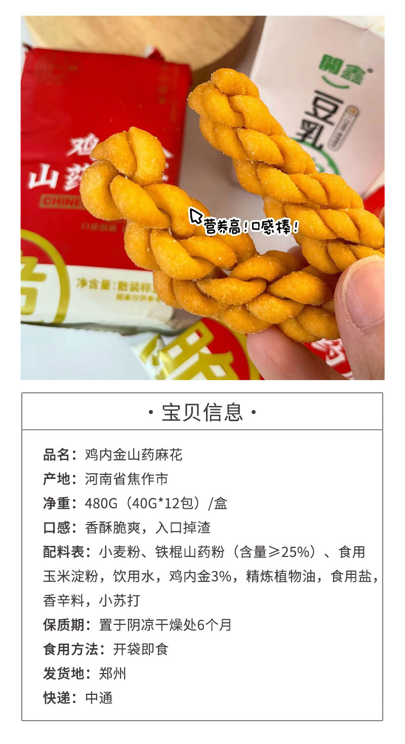 【鸡内金小麻花】营养高,口感棒,早餐搭配牛奶,果蔬汁,爽口不腻,运动累了来一根代餐饱腹~