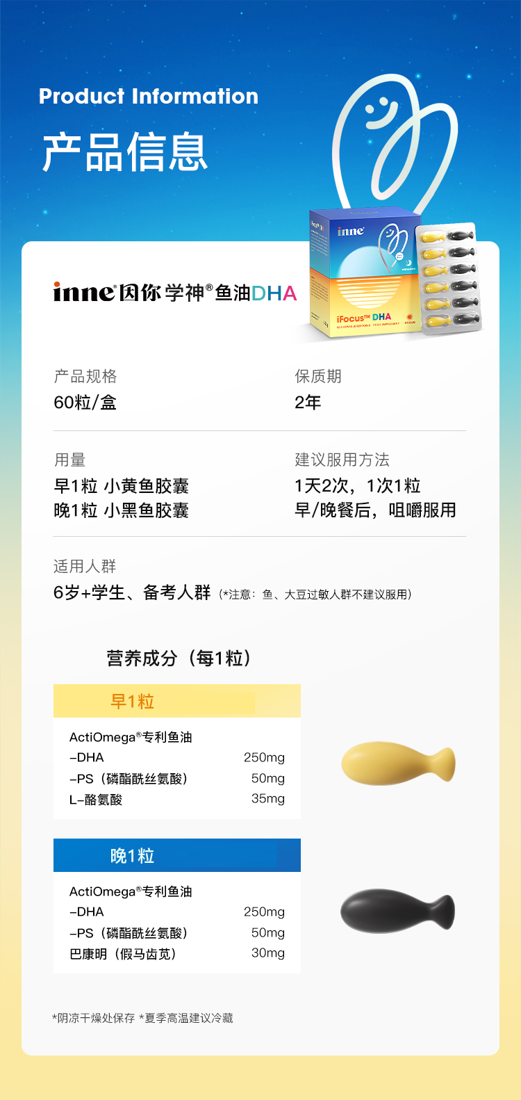 【🔥新品】inne因你学神DHA学生备考巴康明鱼油