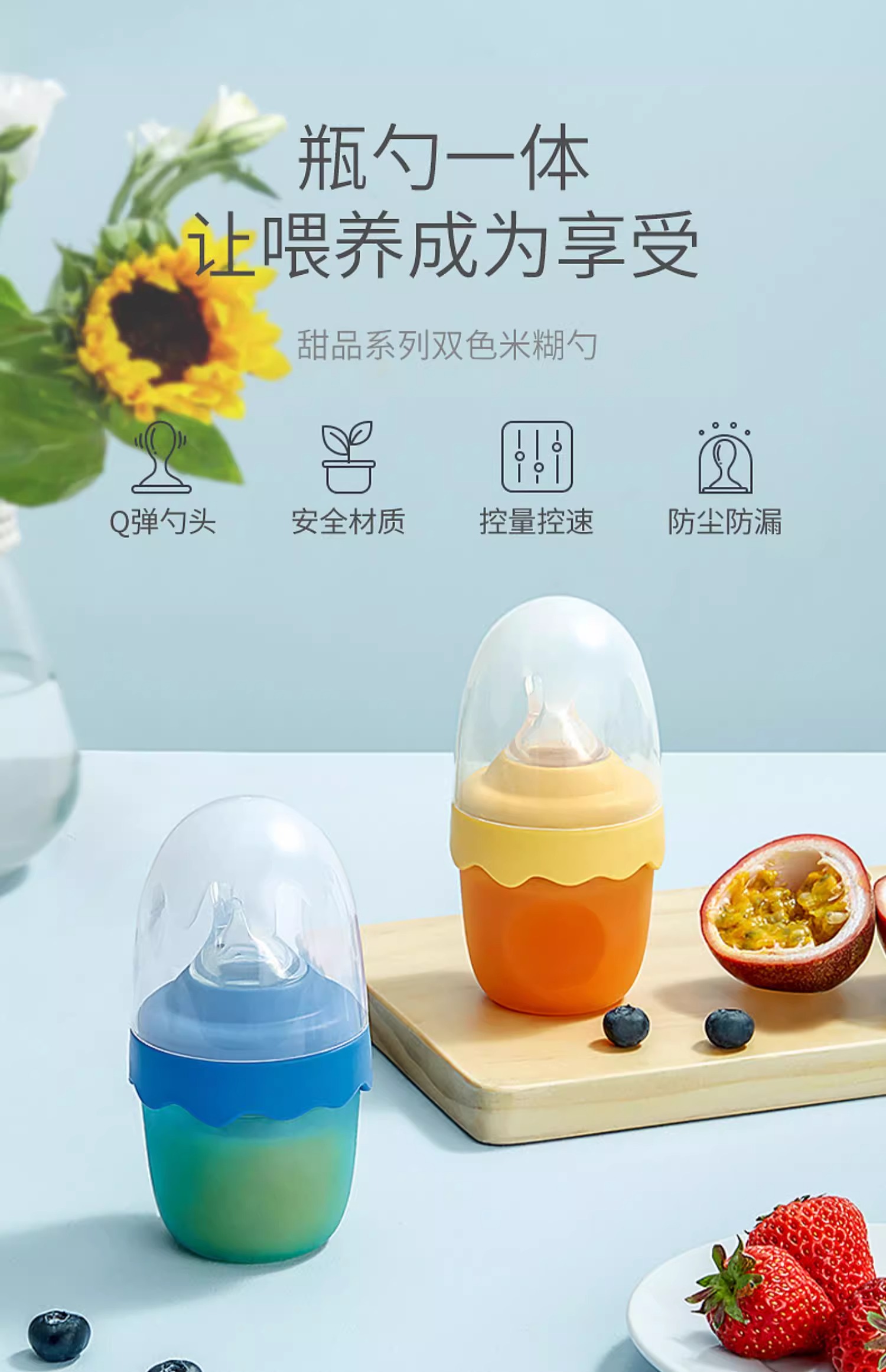 【微瑕】可优比婴儿米糊勺奶瓶硅胶挤压式婴儿喂养勺子喂食器宝宝辅食工具(收到无质量问题不退不换,介意者勿拍)